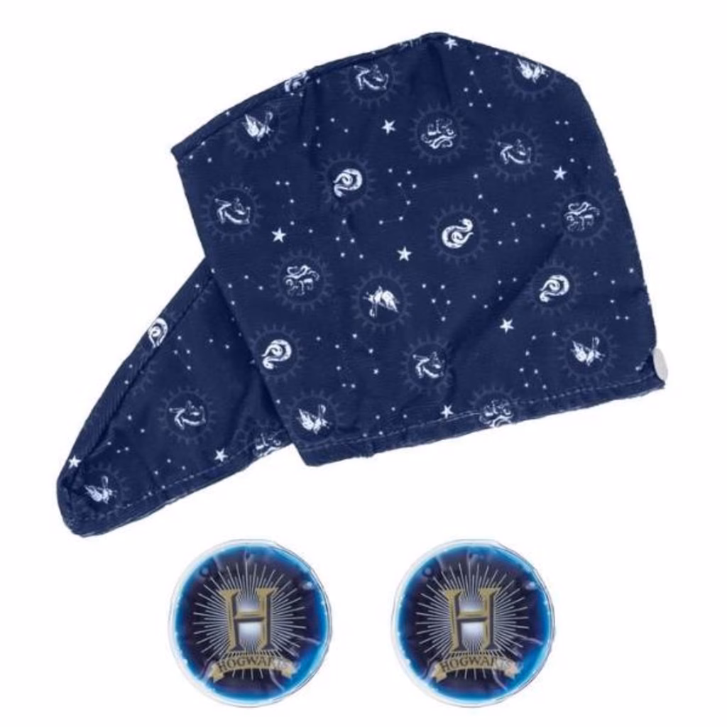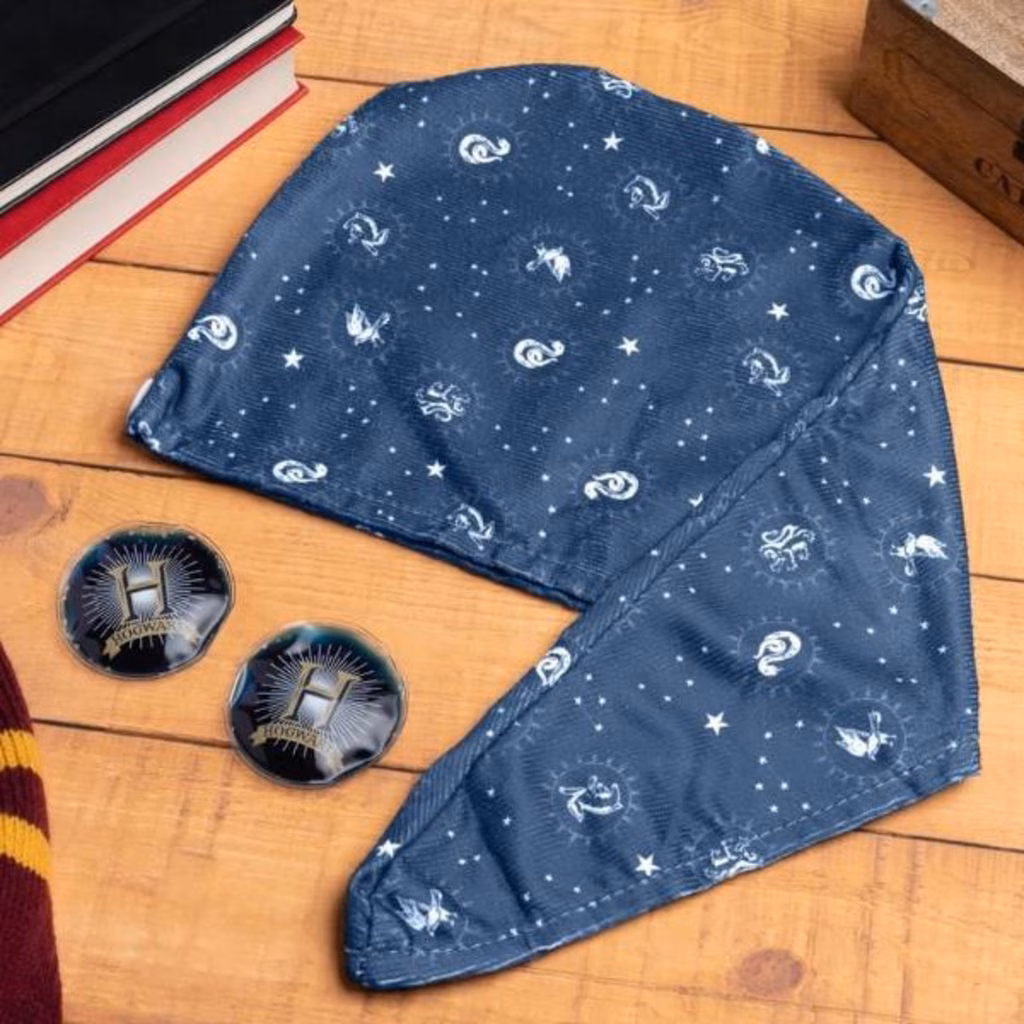 Questo set relax di bellezza di Harry Potter con licenza ufficiale contiene due cuscinetti in gel per gli occhi rinfrescanti e un turbante per capelli ad asciugatura rapida. Tutti gli articoli presentano dettagli di colore dorato su un ricco sfondo blu navy. Il turbante per capelli ad asciugatura rapida è realizzato con un materiale in microfibra che assorbe più acqua nei capelli rispetto a un asciugamano tradizionale. Ciò riduce il tempo necessario per l'asciugatura e, di conseguenza, i capelli subiranno meno danni da calore, lasciandoli più sani, pieni e lucenti. Per utilizzare i cuscinetti in gel per occhi rinfrescanti, basta metterli in frigorifero due ore prima dell'uso. Si adatteranno comodamente all'area per una soluzione naturale alle occhiaie.