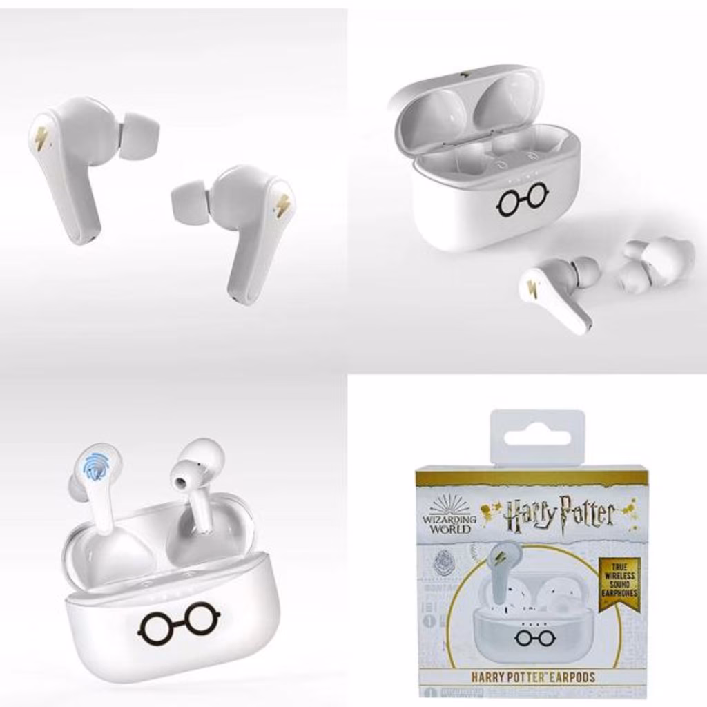 Mantieni tutti i tuoi incantesimi magici con questi fantastici auricolari TWS di Harry Potter, con gli occhiali di Harry e la cicatrice dorata a forma di fulmine sulla parte anteriore della custodia di ricarica wireless e la cicatrice in lamina d'oro su ciascun auricolare per stupire i tuoi amici maghi.