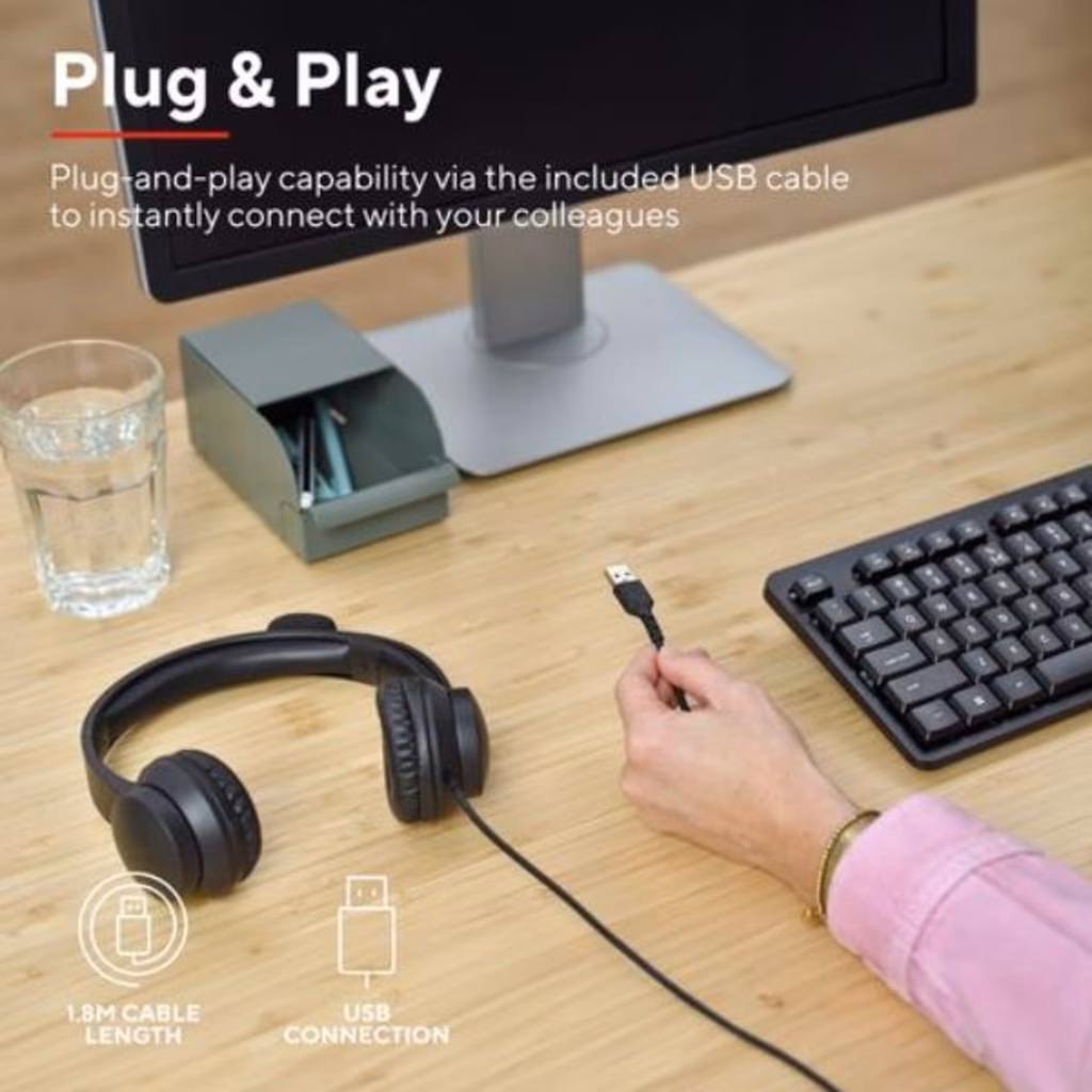 Con le cuffie HS-201 potrai immergerti nelle riunioni in tutta comodità. Dotate di comandi per il volume on-ear e microfono flip-to-mute, avrai tutto sotto controllo per riunioni e videochiamate ancora più produttive. Con un archetto regolabile, morbidi padiglioni e un design leggero, le cuffie HS-201sono ideali per le videochiamate.