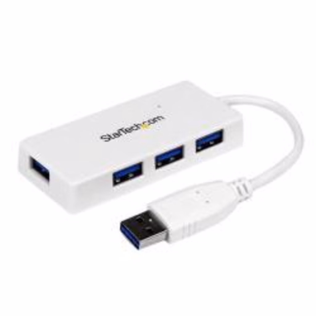 L'hub Mini USB 3.0 SuperSpeed portatile a 4 porte (bianco) ST4300MINU3W permette di espandere la connettività USB trasformando una singola porta USB 3.0 in quattro porte USB 3.0 esterne. Il design del cavo integrato rende questo hub mini USB l'accessorio ideale per Mac®/notebook PC o computer Ultrabook .