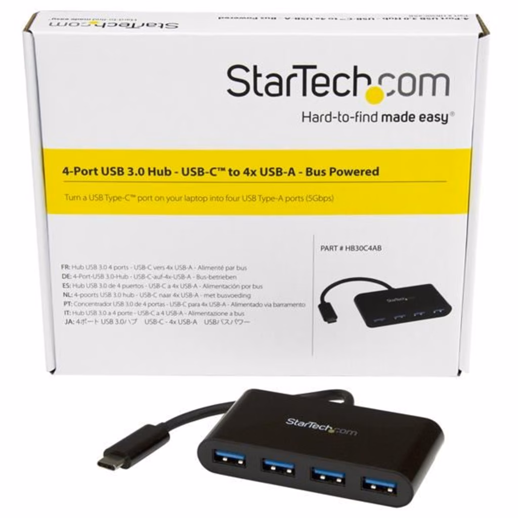 Ecco un accessorio indispensabile per chi ha un computer con tecnologia USB-C ma vorrebbe avere altre porte USB-A. Questo hub USB 3.0 portatile compatto consente di ampliare le opzioni di connettività del computer laptop o desktop aggiungendo quattro porte USB Type-A tramite una singola porta USB Type-C o Thunderbolt 3. Siccome è alimentato tramite bus USB, non deve essere collegato a un adattatore di alimentazione esterno e quindi è più comodo da trasportare e meno ingombrante nelle workstation.