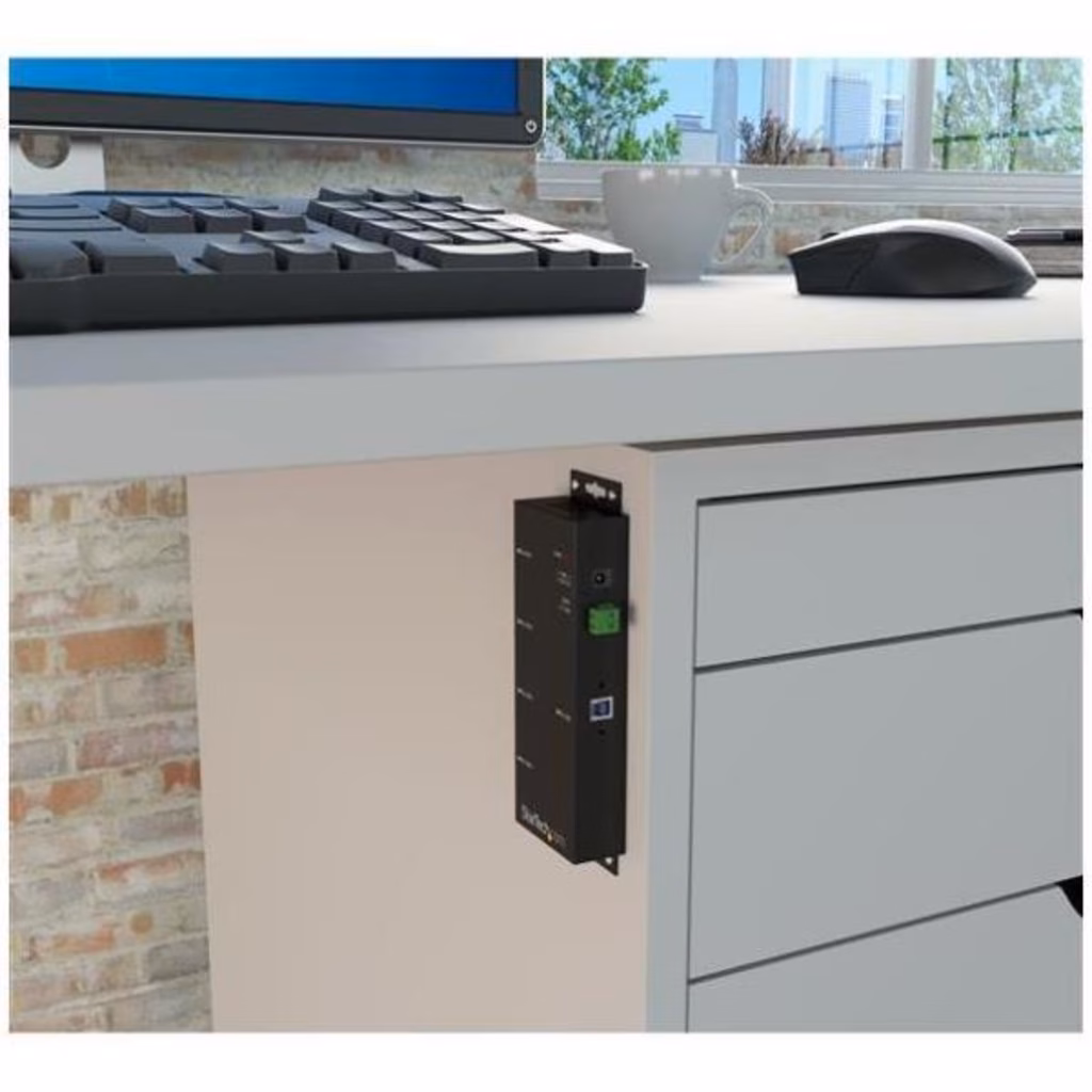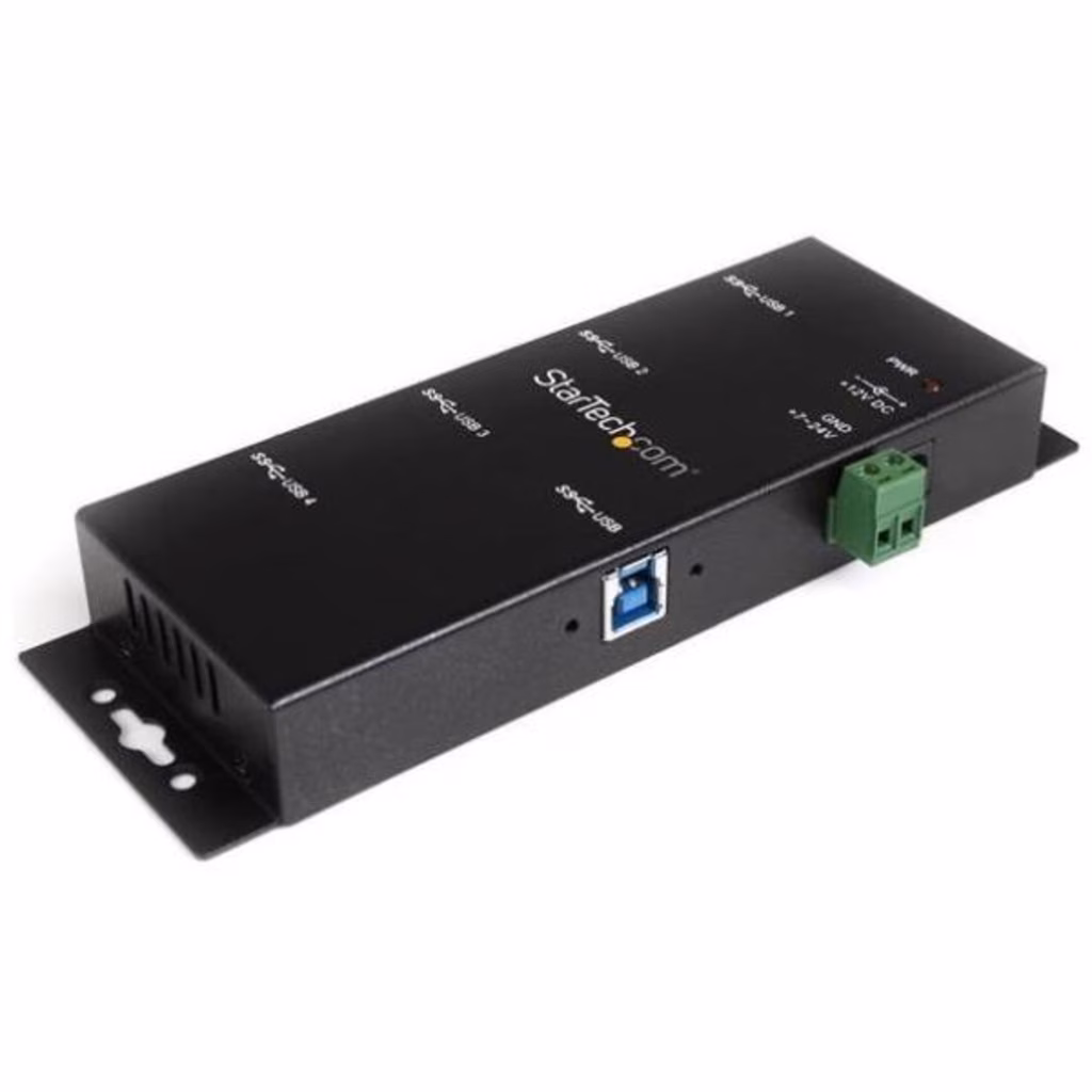 Questo hub USB 3.0 per uso industriale a 4 porte conforme a TAA assicura tutta la scalabilità necessaria negli ambienti industriali difficili, nei laboratori di riparazione e assistenza prodotti, nelle sale conferenze e nelle workstation da ufficio. Dotato di un robusto alloggiamento in metallo per impieghi industriali, è progettato per soddisfare i requisiti avanzati di collegamento di un elevato numero di dispositivi nelle fabbriche e negli uffici. Perfetto per gli ambienti difficili Questo hub USB per uso industriale offre prestazioni affidabili in un resistente alloggiamento in metallo e supporta un'ampia gamma di ingressi tramite la morsettiera da 7 a 24 V CC, assicurando la massima flessibilità per l'alimentazione dell'hub in base alle capacità di ingresso di potenza di cui si dispone. Perfetto per gli ambienti degli stabilimenti industriali, il robusto hub supporta inoltre un'ampia gamma di temperature d'esercizio (da 0°C a 55°C) e offre protezione dalle scariche elettrostatiche (ESD) su ogni porta USB, contribuendo a evitare il danneggiamento dei dispositivi collegati. Collegamento e ricarica di più dispositivi USB Progettato per un elevato volume di collegamenti, questo robusto hub USB 3.0 offre quattro porte per il collegamento di un numero maggiore di dispositivi e periferiche USB. L'hub supporta inoltre la specifica di ricarica delle batterie USB 1.2 ed eroga fino a 2,4 A su ciascuna porta per un massimo di 20 W in totale, permettendo di ricaricare i dispositivi mobili in meno tempo rispetto alle porte USB tradizionali. Installazione dove più serve Dotato di versatili opzioni di installazione, l'hub può essere montato nella posizione più idonea per il proprio ambiente. Grazie alle staffe di montaggio integrate, alle guide di montaggio DIN incluse e al cavo host USB di 1,8 metri anch'esso incluso, è possibile fissare saldamente l'hub USB 3.0 alla maggior parte delle superfici, ad esempio a una parete, sotto una scrivania o un rack. StarTech.com offre un adattatore di alimentazione esterno, ITB20D3250, venduto separatamente, che può essere utilizzato come alimentatore alternativo, di riserva o di ricambio per la linea di hub USB per uso industriale di StarTech.com.Compatibile con i dispositivi USB meno recenti Il robusto hub USB supporta la larghezza di banda completa a 5 Gbps dello standard USB 3.0 ed è retrocompatibile con i dispositivi USB precedenti. È possibile collegare le periferiche meno recenti unitamente ai più nuovi dispositivi USB 3.0 senza alcun problema. Il prodotto ST4300USBM è coperto da una garanzia StarTech.com di 2 anni e dal supporto tecnico gratuito a vita.