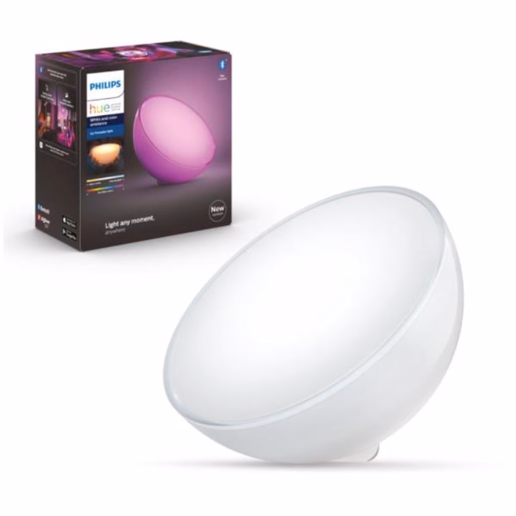 PHILIPSHue White and ColorAmbiance E27Luce portatile Go(ultimo modello)Batteria integrataControllo immediatotramite BluetoothControllo vocale omediante app*Aggiungi Bridge Hue persbloccare altrefunzionalità