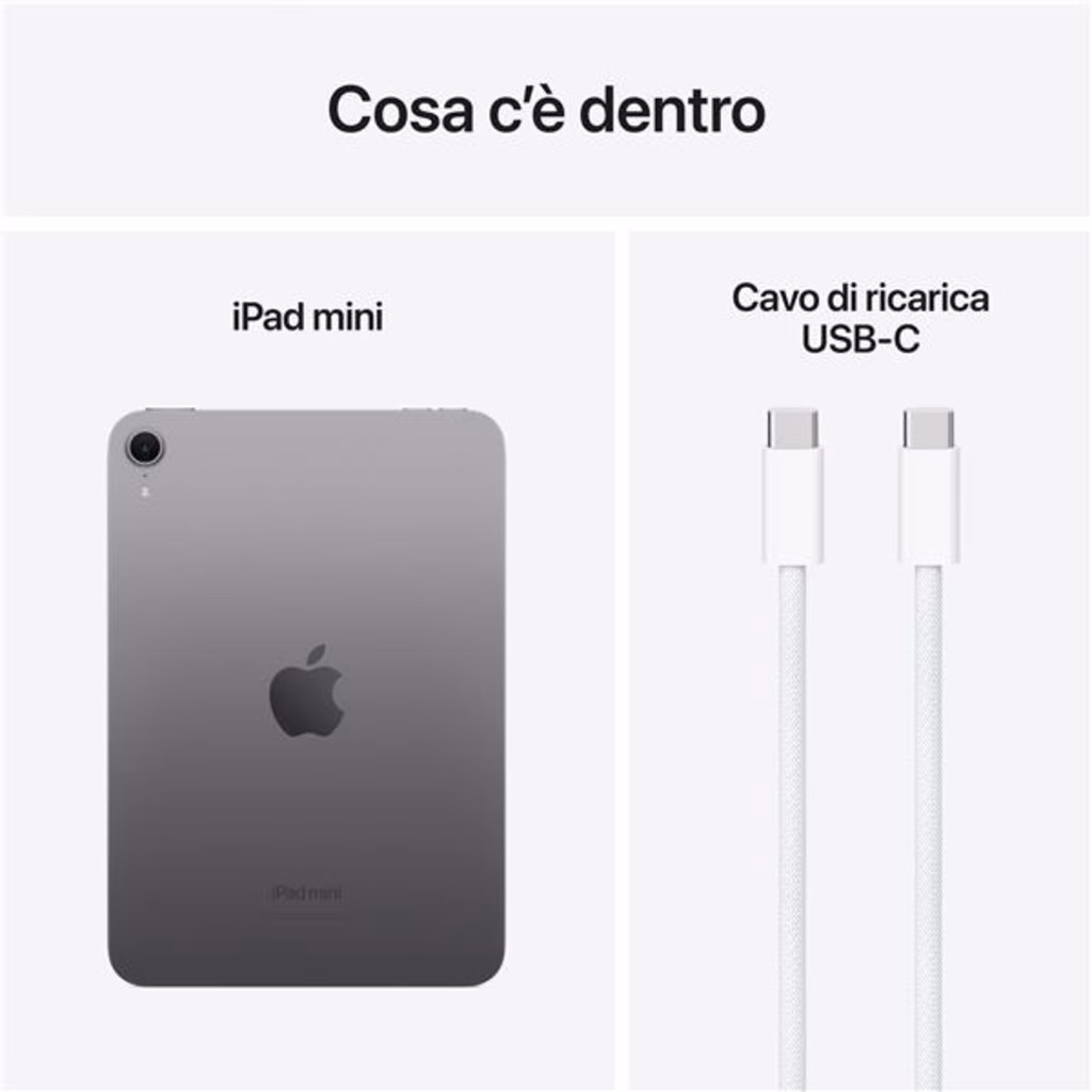 COSTRUITO PER APPLE INTELLIGENCE - Apple Intelligence è il sistema di intelligenza personale che vi aiuta a scrivere, ad esprimervi e a fare le cose senza sforzo. Con una protezione della privacy all'avanguardia, vi garantisce la tranquillità di sapere che nessun altro può accedere ai vostri dati, nemmeno Apple. DISPLAY LIQUID RETINA DA 8,3 POLLICI - Lo splendido display Liquid Retina è dotato di tecnologie avanzate come il P3 wide color, il True Tone e la bassissima riflettività, che rendono tutto più bello. Il chip A17 Pro offre prestazioni potenti e grafica ultraveloce per i giochi. E con una batteria che dura tutto il giorno, l'iPad mini è sempre pronto per qualsiasi compito o progetto. Touch ID è integrato nel pulsante superiore, così puoi usare la tua impronta digitale per sbloccare l'iPad, accedere alle app ed effettuare pagamenti sicuri con Apple Pay.