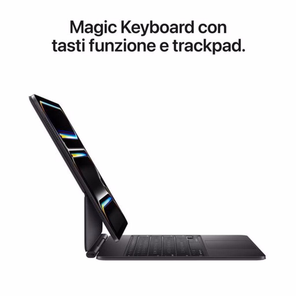 Il display OLED Tandem garantisce una nitidezza e una luminosità eccezionali con una luminosità massima a schermo intero di 1000 cd/m². Il display supporta la tecnologia ProMotion per un'esperienza visiva fluida e HDR10 per un contrasto straordinario. Dotato del chip Apple M5, l'iPad Pro gestisce con facilità le attività più impegnative grazie al suo acceleratore grafico a 10 core che offre prestazioni ottimali per i giochi, l'editing video e molto altro. Il dispositivo è dotato di un sistema audio composto da quattro altoparlanti e un array di 4 microfoni, che offre un suono chiaro e un'esperienza audio coinvolgente per musica, film e chiamate. iPad Pro include una fotocamera posteriore da 12 megapixel che cattura immagini e video di alta qualità, mentre la fotocamera FaceTime HD frontale da 12 megapixel supporta funzioni come Center Stage, che consente di effettuare videoconferenze dinamiche.