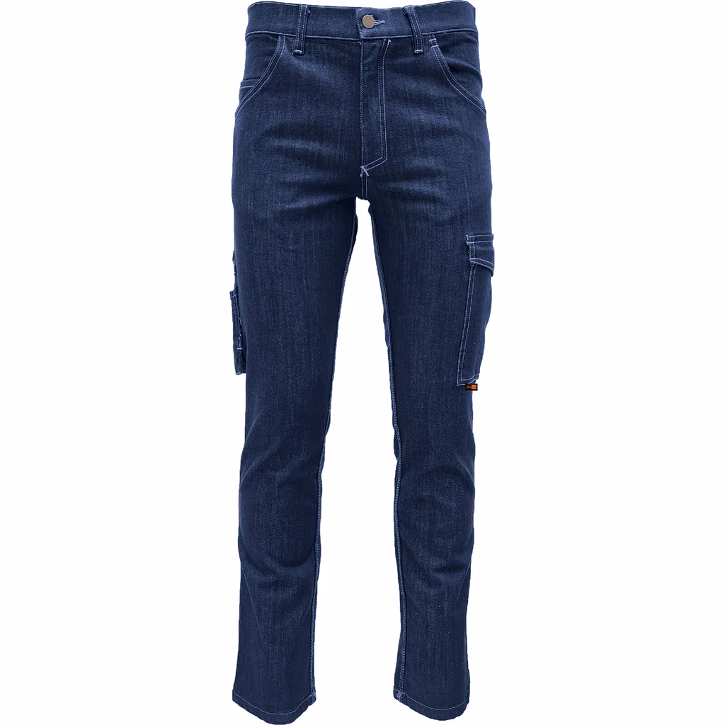 Il Jeans Santana e' prodotto con il 98% di cotone e il 2% di elastane, con un peso di 280 g/m². E' composto da 6 tasche; 2 tasche ai fianchi con taschino supplementare, 2 tasche posteriori e 1 tasca cargo laterale con patta, ha inoltre un portametro integrato con inserti porta attrezzi e gancio portamartello