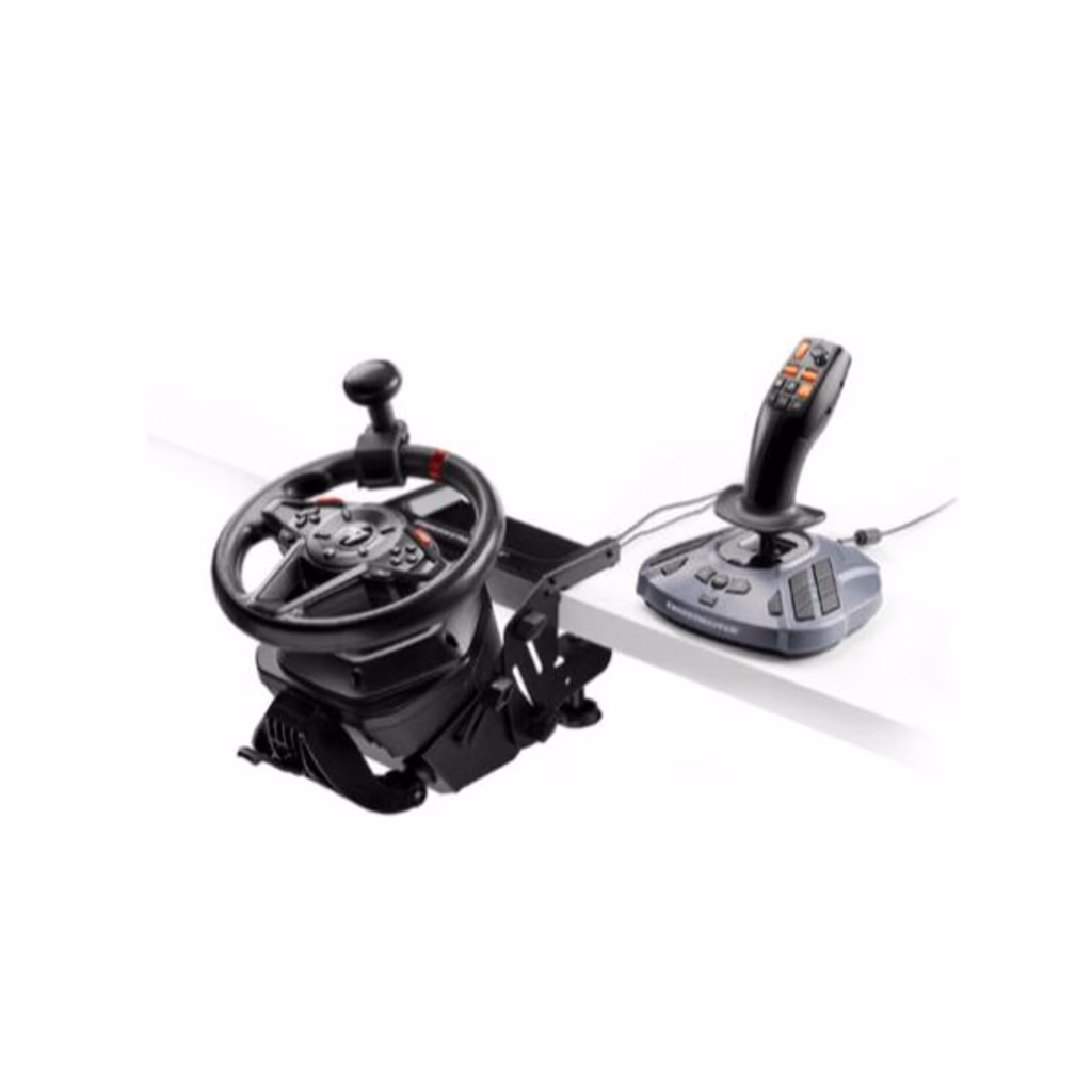 Utilizza SimTask FarmStick insieme a un volante da corsa T128 o T248 e a un kit di sterzo SimTask (tutti venduti separatamente) per un controllo totale e un'esperienza immersiva che simula la cabina di guida di macchinari agricoli o edili. SimTask FarmStick può essere utilizzato anche da solo o in coppia per macchinari più tecnici, comprese le attrezzature forestali.