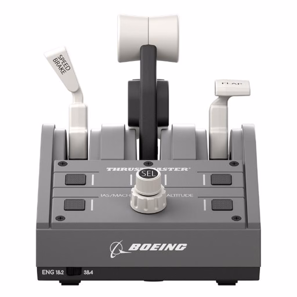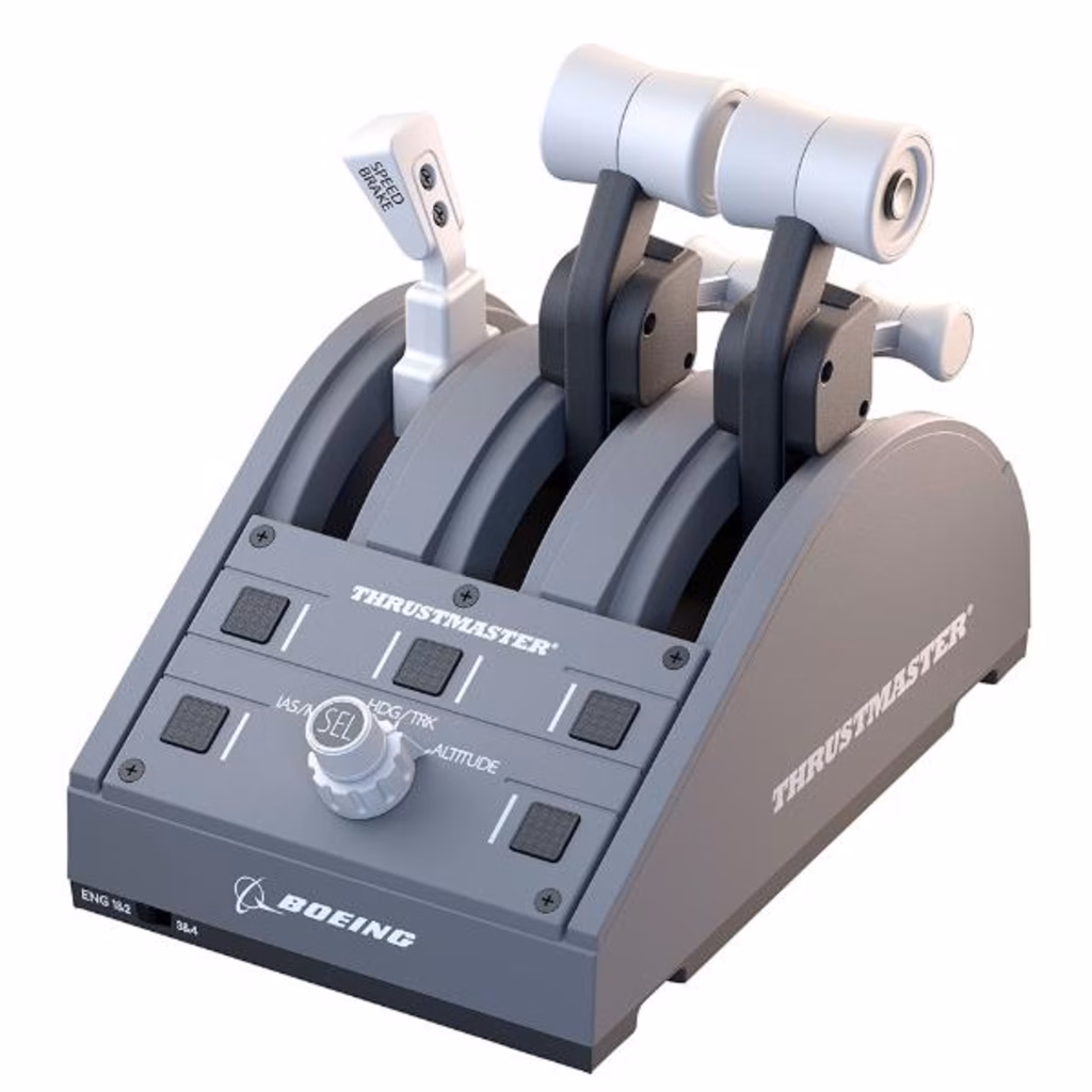 Ispirato alle autentiche sensazioni offerte dal vero quadrante manetta del Boeing Dreamliner, TCA Quadrant Boeing Edition replica la vera forza resistente avvertita dai piloti mentre alzano o abbassano le leve di spinta.