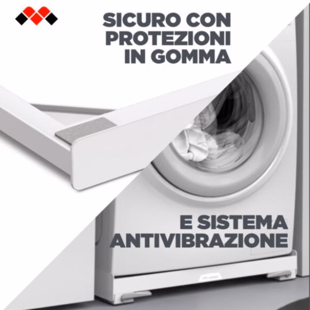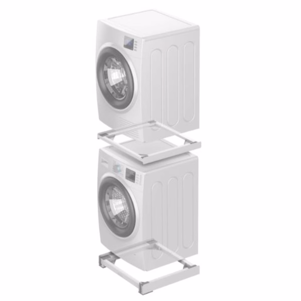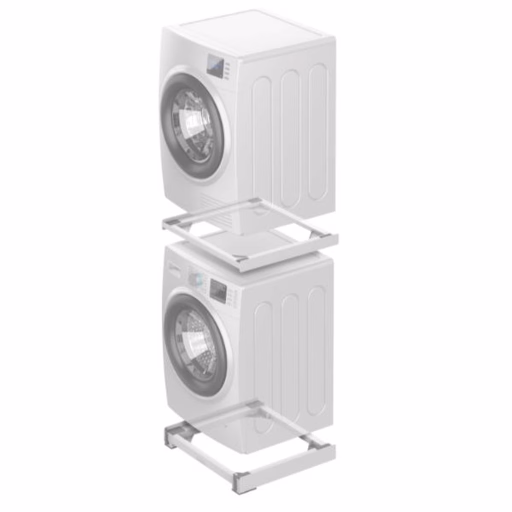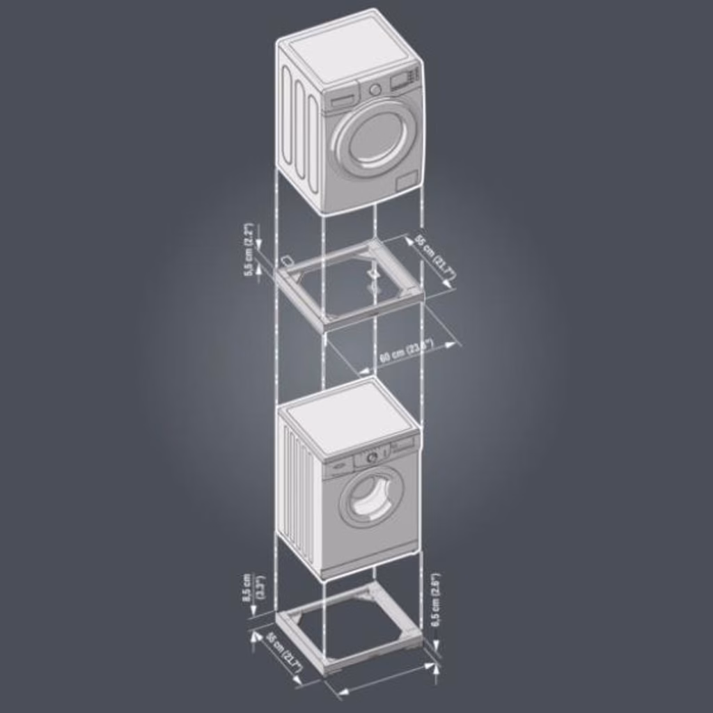Universale e compatibile con tutte le lavatrici e asciugatrici a carica frontale larghe 60 cm con una distanza massima tra i piedini anteriori e posteriori di 54,5 cm. Inoltre, è compatibile con asciugatrici di profondità massima di 70 cm. Il kit sovrapposizione lavatrice asciugatrice è premontato e semplicissimo da installare, includendo anche una cinghia di sicurezza per una maggiore stabilità.