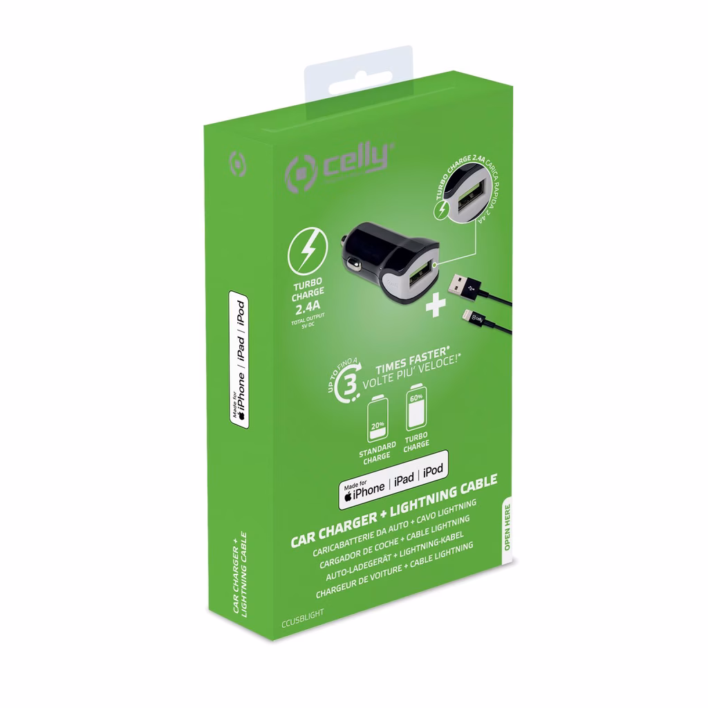 CCUSBLIGHT è il caricabatteria da auto universale con porta USB-A e corrente di ricarica massima di 2.4 Ampere/ 12 Watt che permette la ricarica rapida di smartphone e tablet.