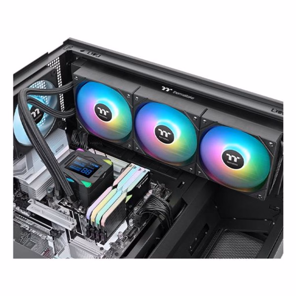 l LA360-S ARGB Sync AIO Liquid Cooler presenta un caratteristico blocco acqua RGB in stile gaming con un LCD a segmenti da 2,4", che mostra chiaramente le informazioni in tempo reale. Dotato di tre ventole ARGB da 120 mm ad alte prestazioni che raggiungono una velocità fino a 2500 giri/min, offre un'eccezionale efficienza di raffreddamento. Con ventole preinstallate sul radiatore e un design Daisy-Chain, semplifica l'installazione garantendo al contempo una gestione superiore dei cavi.