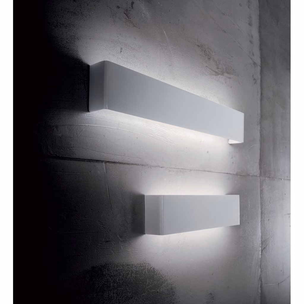 Corpo luce interamente in alluminio con finitura bianca. Fascio luminoso orientato sia verso l'alto che verso il basso. L 30 x H 10 x P 5,5 cm LED 22,5W 30000 h 3000 K 1500 lumen Lampadina inclusa IP20