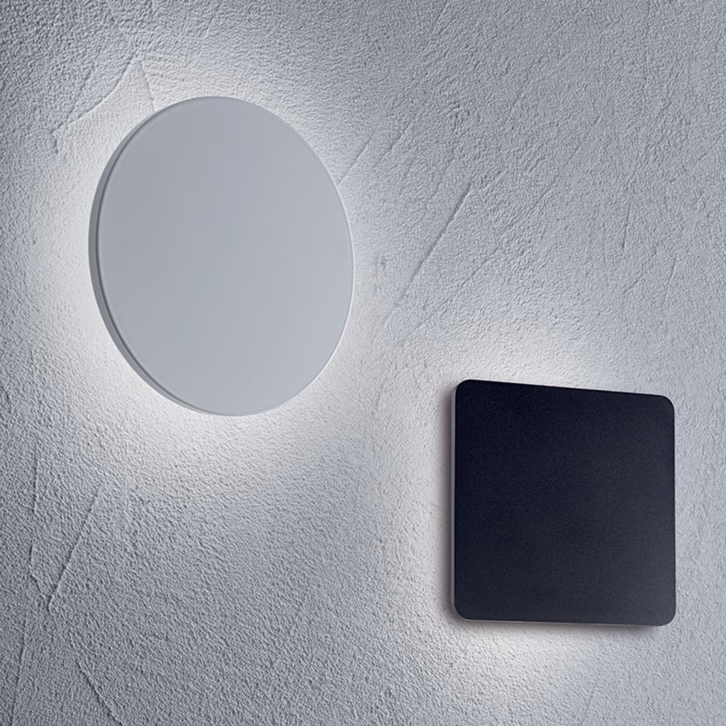 Corpo luce in alluminio verniciato a polveri di colore bianco o nero. Diffusore in materiale plastico opale. Sorgente luminosa a led integrati con emissione di luce riflessa. Lampadina inclusa.