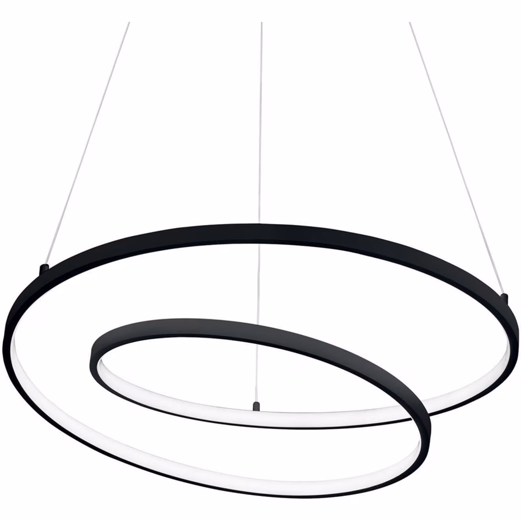 Base e montatura in metallo verniciato a polveri o placcato. Cavi in pvc. Diffusore in gomma opale. Ø 60 x H min 30 / max 150 cm. LED 47W. 30000 h. 3000 K. 5000 lumen. Lampadina inclusa. IP20