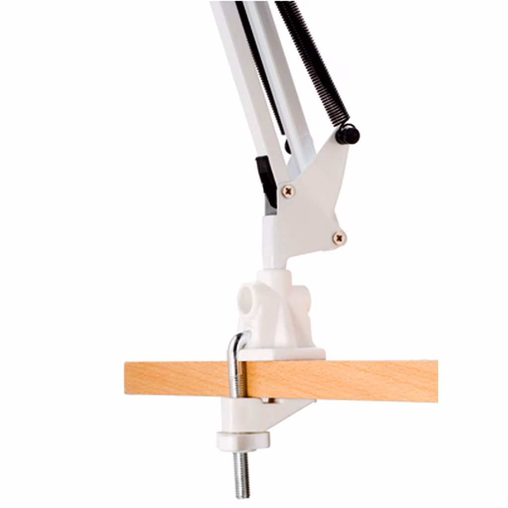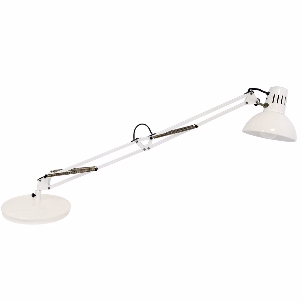 Lampada ARCHITETTO con doppio braccio da 42+39 cm - disponibile in diverse versioni - fornita sia di base da 22,5 cm che di morsetto - adatta a lampadine E27 alogene e a led - Garanzia 3 anni