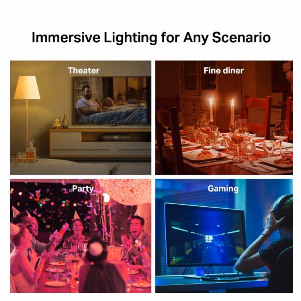 Impostazioni pre-configurate Una volta trovata l'impostazione ideale - per una cena, una serata film o per la lettura di un libro - puoi salvare i parametri e richiamarli rapidamente tramite l'app Tapo.