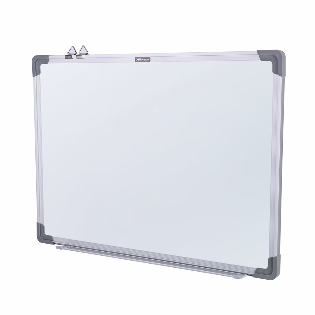 Lavagna bianca in acciaio laccato con superficie magnetica - bordo in alluminio e portapennarelli rimovibile - gli attacchi di montaggio inclusi consentono inoltre di fissare la lavagna al muro - garantita 1 anno.