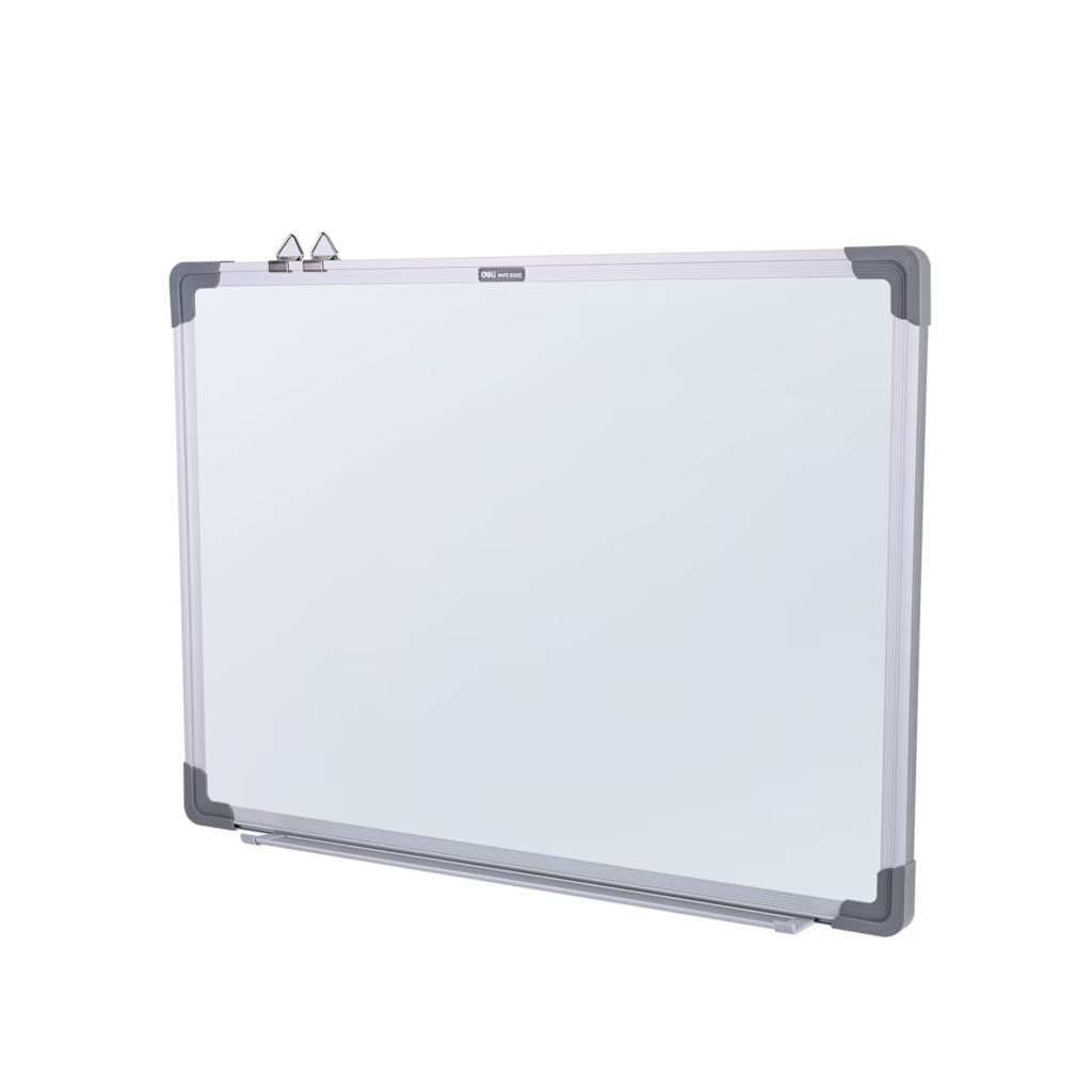 Lavagna bianca in acciaio laccato con superficie magnetica - bordo in alluminio e portapennarelli rimovibile - gli attacchi di montaggio inclusi consentono inoltre di fissare la lavagna al muro - garantita 1 anno.