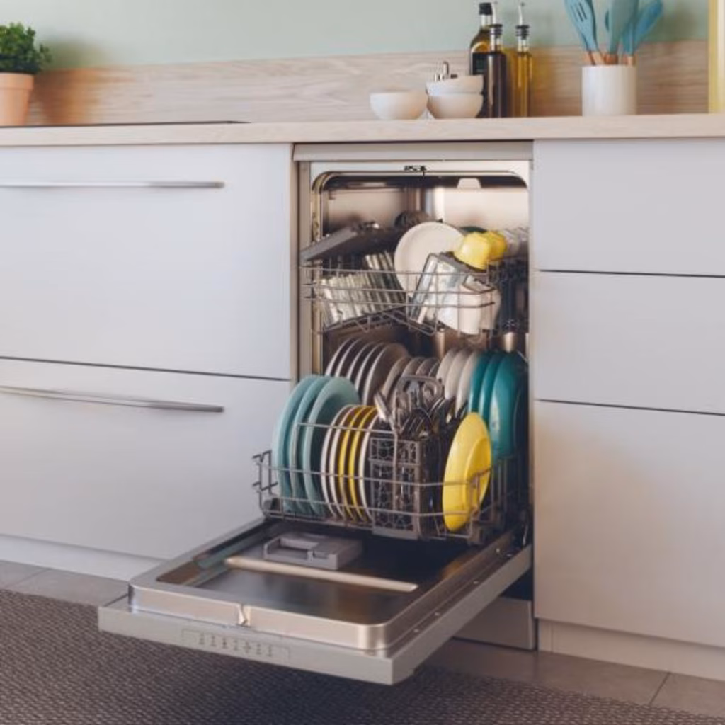 Lavastoviglie Candy SLIM con una capacità fino a 10 set di stoviglie.