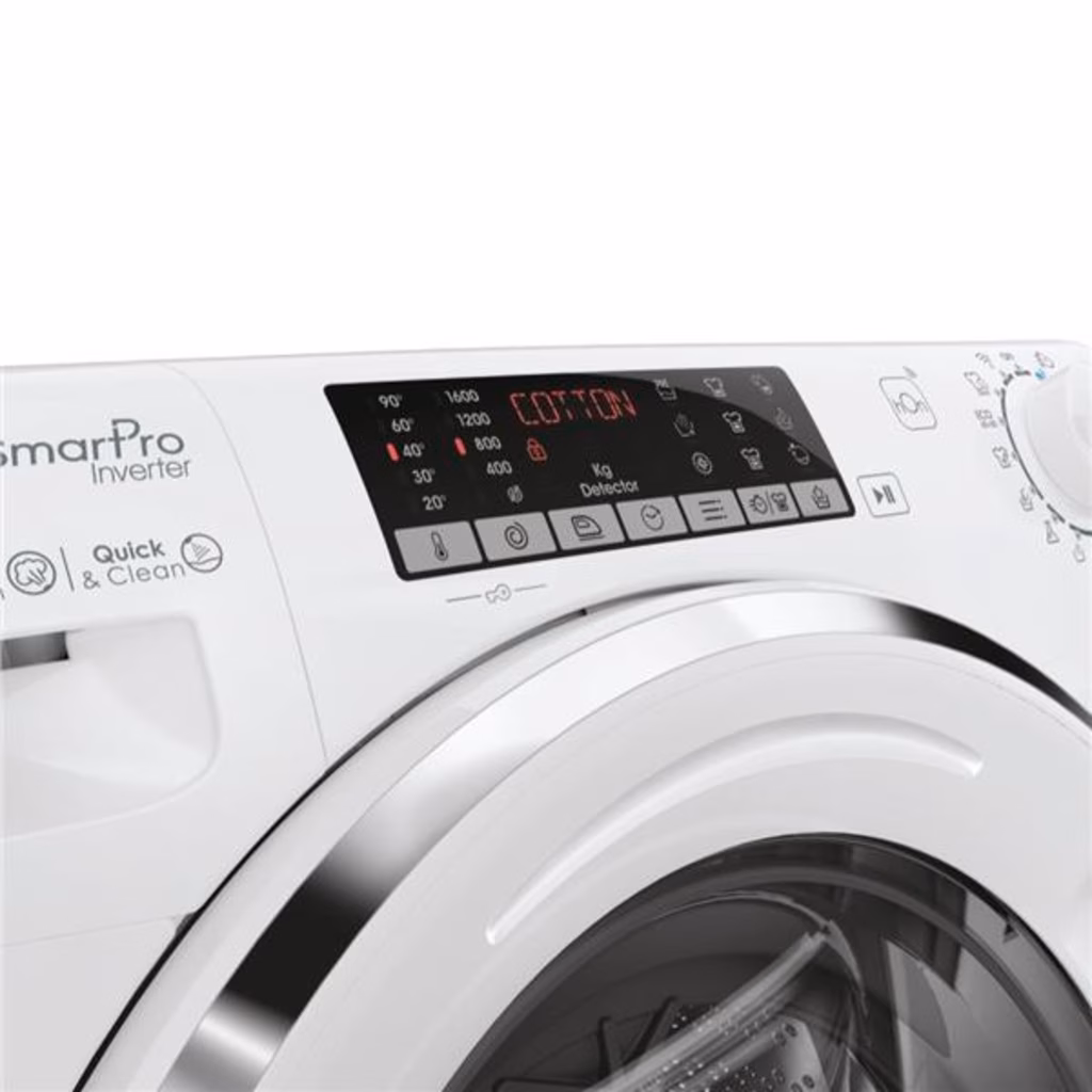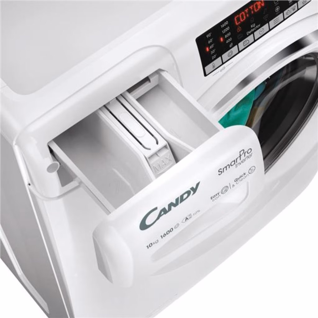 Grazie al ridotto consumo energetico, Candy Smart Pro Inverter è il 10% più efficiente di una lavatrice standard in classe A.