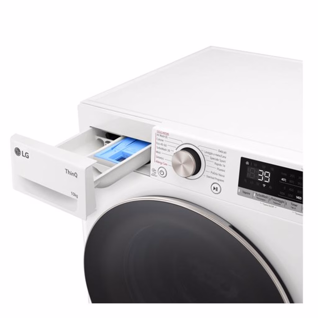 Wi-Fi con ThinQCollega la lavatrice al Wi-Fi di casa e scarica l'app LG ThinQ sul tuo smartphone per controllarla da remoto o con la tua voce usando l'assistente Google. Quando il ciclo di lavaggio è terminato, l'app ThinQ ti avviserà con una comoda notifica. Puoi scaricare anche nuovi programmi di lavaggio e, se hai un'asciugatrice LG con Wi-Fi, puoi impostare automaticamente l'asciugatura ideale del bucato appena fatto.