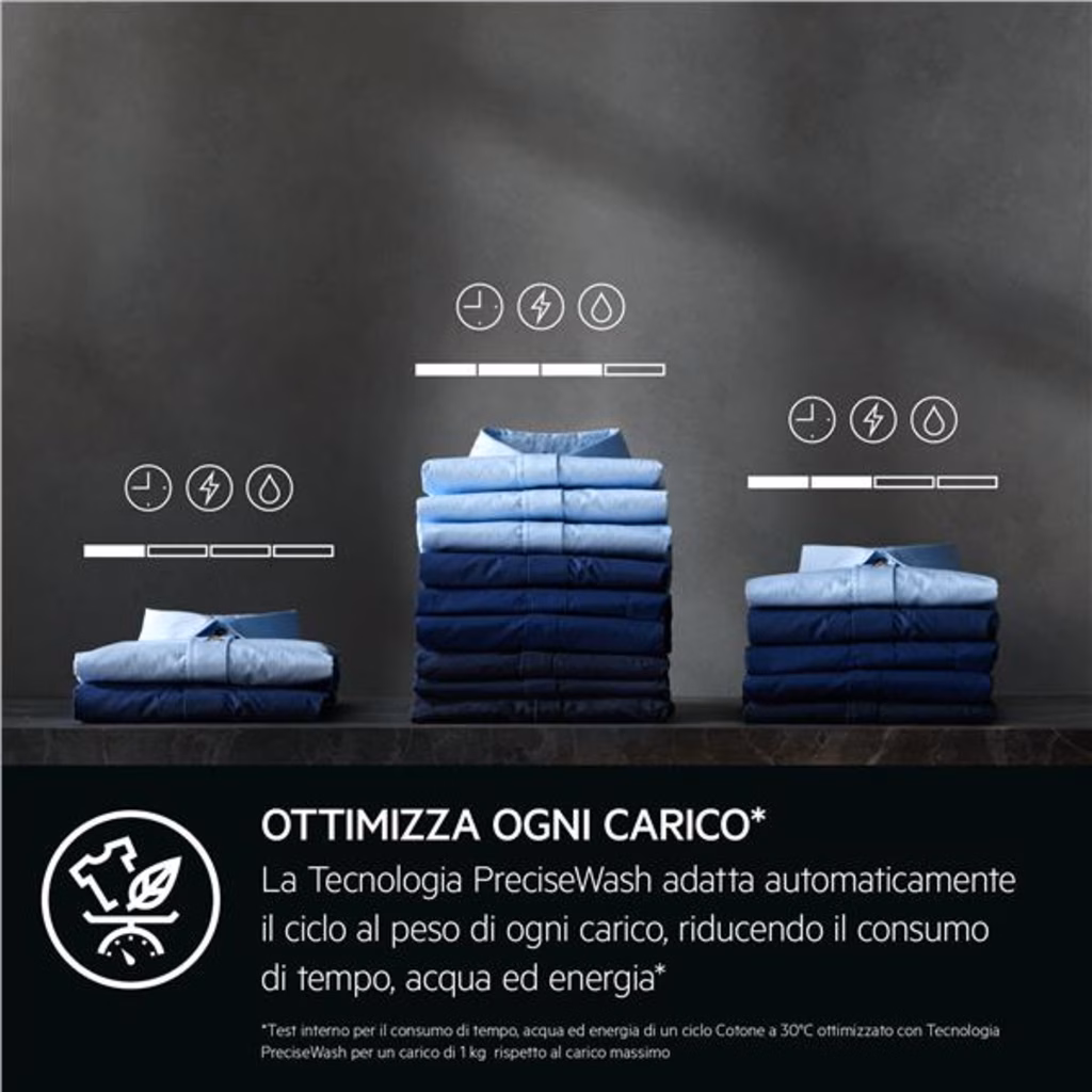AEG Series 7000 LR7FD94 lavatrice Caricamento frontale 9 kg 1351 Giri/min BiancoUSA IL VAPORE INVECE DI LAVARE. IN SOLI 25 MINUTI CON IL 96% D'ACQUA IN MENO. Il vapore rinfresca rapidamente i tessuti ed elimina gli odori dai capi già indossati, consumando solo 2L d acqua per ciclo. Aggiungendo invece l opzione Vapore Finale al termine di un ciclo di lavaggio, puoi ridurre le pieghe e il tempo di stiratura.