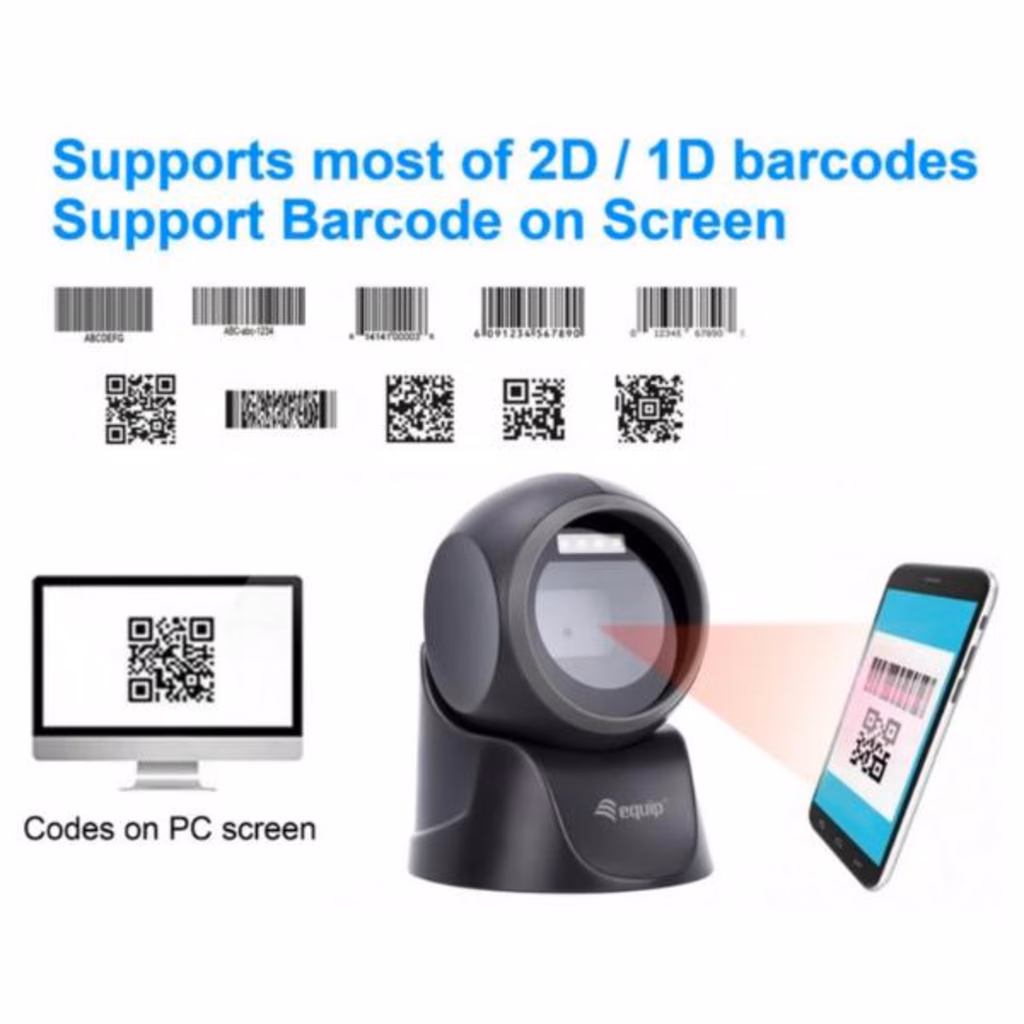 Lo scanner di codici a barre da tavolo 2D omnidirezionale Equip è una soluzione di scansione versatile e ad alte prestazioni per diversi settori. Progettato per l'uso da scrivania, questo dispositivo è perfetto per applicazioni di vendita al dettaglio, punti vendita e uffici. Grazie alla capacità di scansione omnidirezionale, è in grado di leggere rapidamente e con precisione i codici a barre 2D da qualsiasi angolazione, migliorando l'efficienza e riducendo lo sforzo dell'utente.