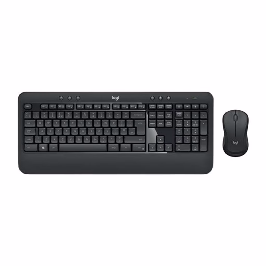 Logitech 920-008684 tastiera Mouse incluso Universale RF Wireless QWERTY Inglese UK NeroLogitech 920-008684. Fattore di forma tastiera: Full-size (100%). Stile tastiera: Dritto. Tecnologia di connessione: Wireless, Interfaccia dispositivo: RF Wireless, Interruttore a chiave per tastiera: Interruttore a chiave a membrana, Struttura tastiera: QWERTY. Riposo del polso. Utilizzo raccomandato: Universale. Colore del prodotto: Nero. Mouse inclusoESPERIENZA DI DIGITAZIONE FAMILIAREI tasti sono stati ottimizzati per garantire una migliore accuratezza e una rumorosità ridotta, mentre le dita riconosceranno immediatamente il layout e la superficie familiare dei tasti. Il supporto per i polsi e i piedini regolabili garantiscono il massimo comfort anche durante le lunghe sessioni alla scrivania.MOUSE COMODO ED ERGONOMICOLa forma sagomata e le morbide impugnature in gomma del mouse wireless si adattano perfettamente al palmo della mano e il massimo della precisione è garantito da un controllo del cursore preciso e dal tracciamento ottimizzato.PRODUTTIVITÀ A PORTATA DI MANOI tasti dedicati pratici ed essenziali offrono un accesso diretto ai dispositivi multimediali, alla calcolatrice e alle funzioni di controllo della batteria. I tasti Fn preimpostati possono persino essere personalizzati in Logitech Options per soddisfare le specifiche necessità.SEMPLICE E AFFIDABILELa tastiera non necessiterà di nuove batterie per ben 36 mesi e il mouse resterà carico per 18 mesi. La tastiera resiste fino a 60 ml di liquido e i tasti resistenti alle abrasioni garantiscono una massima durata della stampa. 1