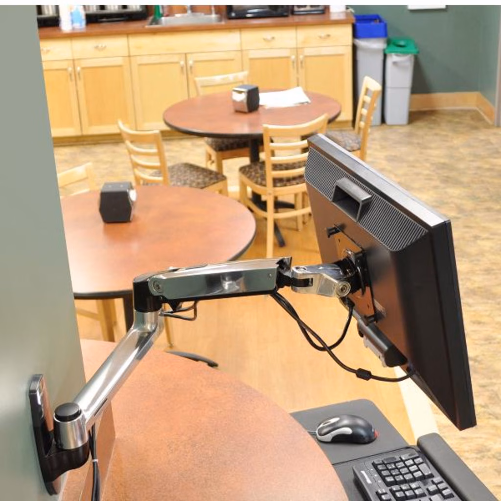 Lucido e aerodinamico, il braccio LX libera spazio e consente di posizionare il display in modo da garantire una maggiore produttività.