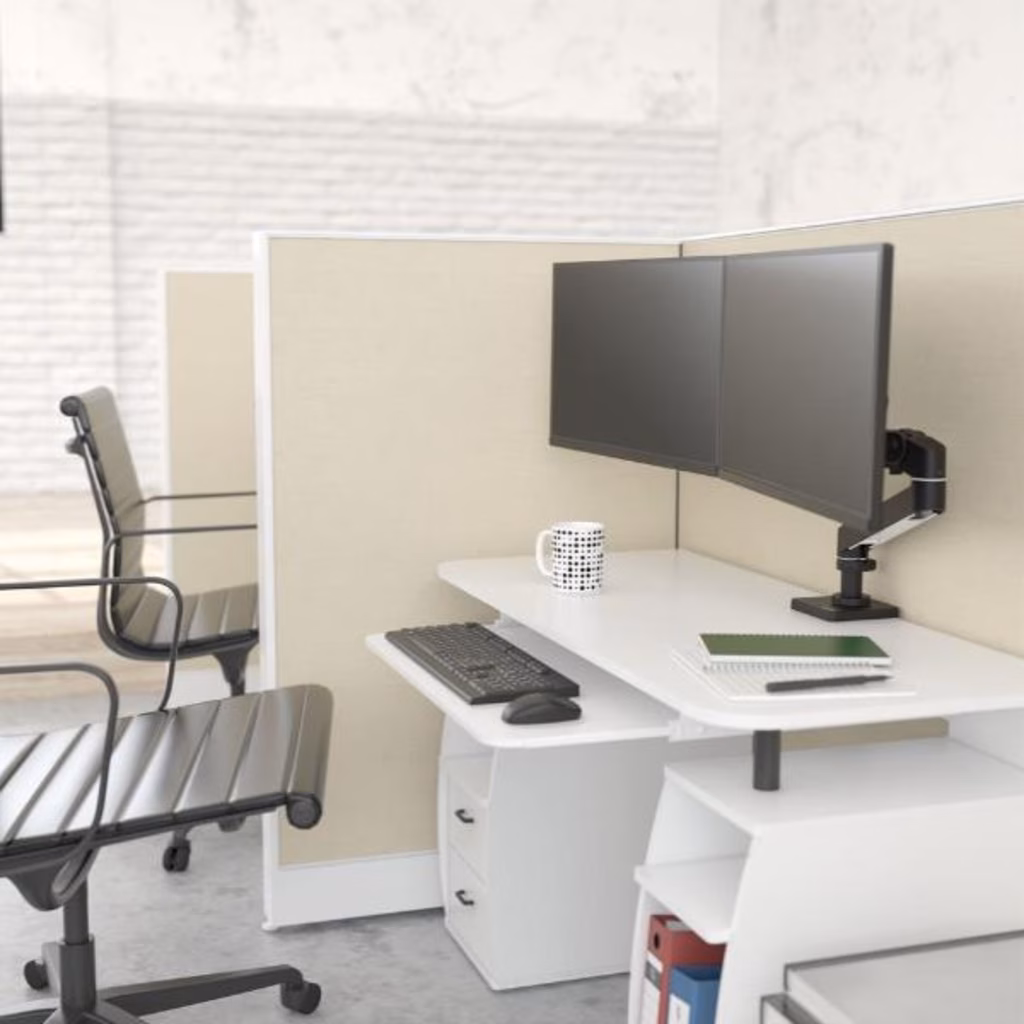 Include: braccio, estensione, 2 perni monitor, morsetto da scrivania, palo da 13,1 cm, kit doppio monitor, componenti di fissaggio