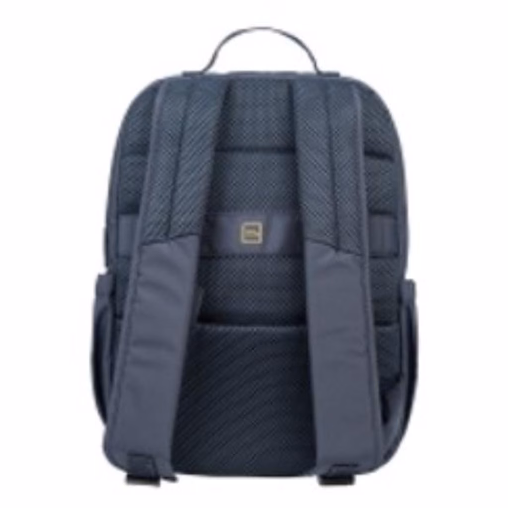 Zaino per laptop 14" e MacBook Pro 14" in materiale tecnico, con tasca esterna frontale piatta. L'interno, capiente e imbottito, presenta una tasca di protezione per laptop o tablet. Il lato posteriore, oltre ad essere dotato di una tasca esterna di sicurezza, ha una fascia per il trolley. Schienale ergonomico e spallaci regolabili e imbottiti.