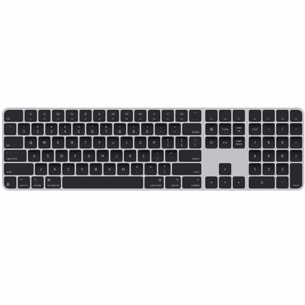 PanoramicaLa Magic Keyboard è disponibile anche con Touch ID, che ti permette di autenticarti in modo semplice e immediato per login e acquisti sicuri.Magic Keyboard con Touch ID e tastierino numerico è una tastiera wireless comodissima, che risponde in modo preciso a ogni tuo tocco. Ha un layout più spazioso, completo di controlli per scorrere rapidamente i documenti e tasti freccia di dimensioni standard, perfetti per chi gioca. Il tastierino numerico è l ideale per lavorare con fogli di calcolo e applicazioni finanziarie. La batteria integrata ti permetterà di scrivere per almeno un mese prima di doverla ricaricare. E grazie alla tecnologia wireless, la Magic Keyboard si abbina automaticamente al Mac, così puoi metterti subito al lavoro.Ha una porta USB-C ed è provvista di un cavo di ricarica USB-C intrecciato, per collegarla e ricaricarla tramite la porta USB-C del Mac.Cosa c è dentro