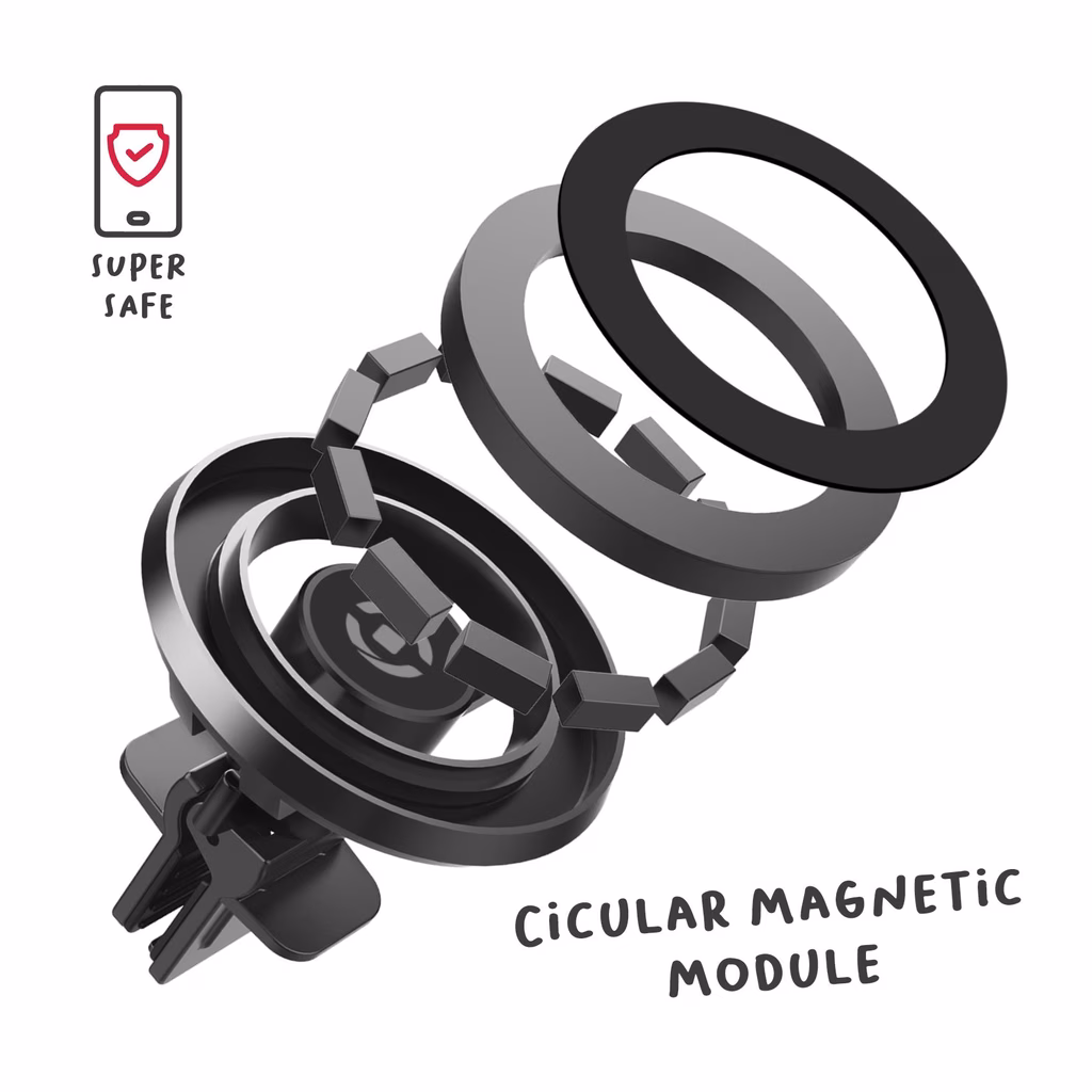 Grazie alla clip regolabile super resistente e dotata di sistema anti-caduta, puoi fissare in sicurezza GHOSTMAG alla presa d'aria della tua auto.