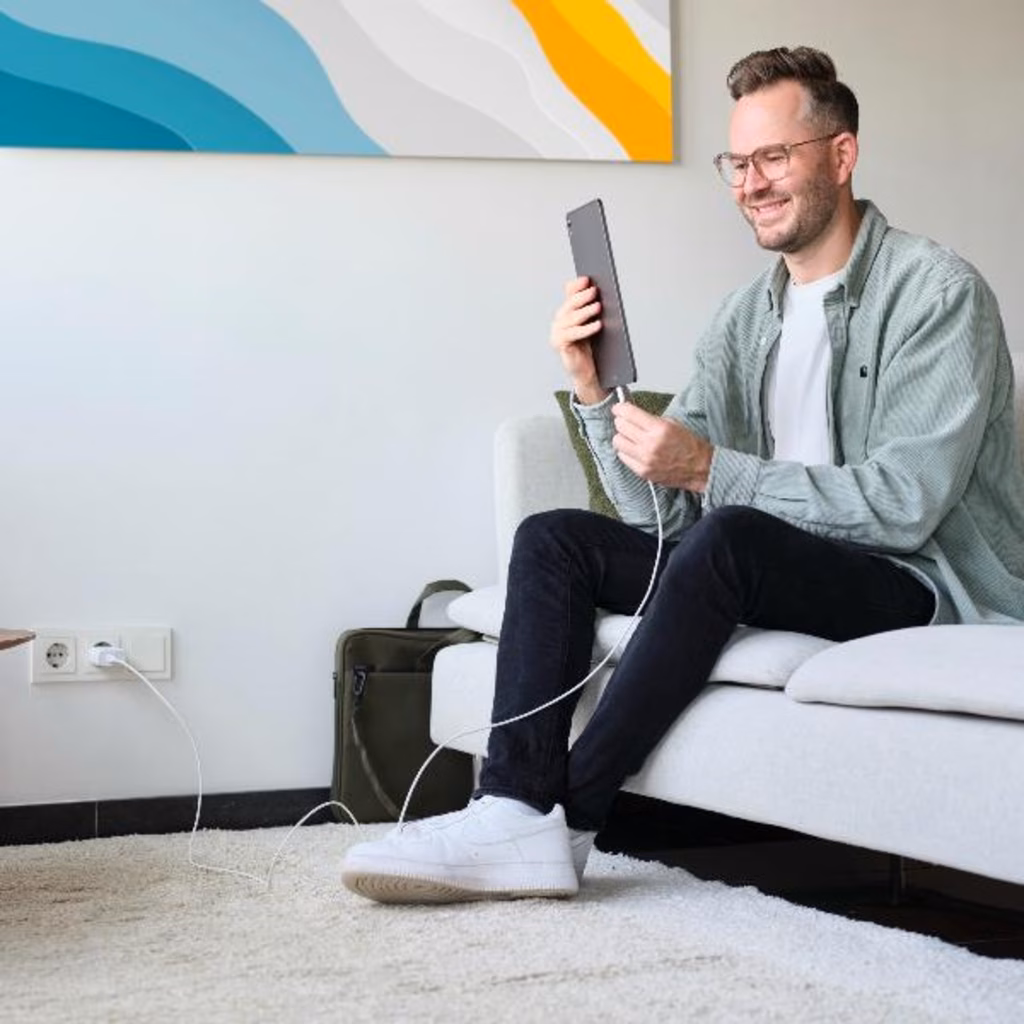La batteria del telefono è agli sgoccioli? Ricaricalo in tempo zero con questo potente caricatore 45W USB-C per assicurarti di avere abbastanza energia per le tue giornate. La sola cosa migliore di un caricatore veloce, è uno che sia anche sostenibile! Con una composizione costituita al 75% da materiali riciclati, Maxo ti aiuta a ricaricare con la massima serenità. Un caricabatteria adatto a tutti i dispositivi.