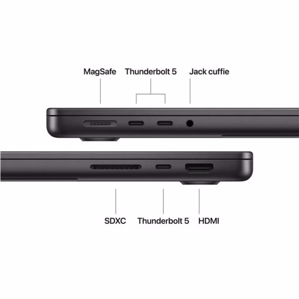 Apple MacBook Pro 14" M5 Pro chip 18-core CPU 20-core GPU, 24GB, 2TB SSD - Nero sideraleMacBook Pro 14". La velocità è di famiglia. MacBook Pro 14" con chip M5 Pro o M5 Max ti offre velocità di un altro livello e potenti funzioni AI on device per lavorare, creare e fare tutto ciò che ti piace. Ha una batteria che dura un giorno intero e uno spettacolare display Liquid Retina XDR: è Pro in tutti i sensi. Caratteristiche principali - ALLACCIA LE CINTURE Oltre a una CPU di nuova generazione, una memoria unificata più rapida e archiviazione SSD fino a due volte più scattante, i chip M5 Pro e M5 Max hanno una GPU più potente con un Neural Accelerator integrato in ogni core, che aumenta la velocità di prestazioni AI e addestramento on device. Così puoi sfrecciare anche nei lavori più complessi. - PROGETTATO PER L AI Il chip Apple e tutti i principali componenti che lo alimentano sono progettati per gestire carichi di lavoro AI on device impegnativi, come l inferenza e l addestramento di modelli linguistici di grandi dimensioni (LLM). E Apple Intelligence rende più facile scrivere, creare e fare tutto ciò che vuoi, con funzioni di ultima generazione per la tutela della privacy. - UN GIORNO INTERO DI BATTERIA MacBook Pro ti dà performance incredibili anche quando non è collegato alla corrente. - MACOS METTE IL TURBO ALLE APP Le tue app preferite, anche quelle incluse come FaceTime e Messaggi, vanno a tutta velocità su macOS. E grazie alla protezione integrata contro i virus e agli aggiornamenti software gratuiti, il tuo Mac resta sempre efficiente e sicuro. - TI PIACE L IPHONE? ANCHE IL MAC TI CONQUISTERÀ Il Mac funziona in perfetta sintonia con gli altri dispositivi Apple. Puoi fare copia e incolla dall iPhone al Mac, e anche usare il Mac per inviare messaggi di testo o fare e ricevere chiamate FaceTime. - BRILLANTE DISPLAY PRO Il display Liquid Retina XDR da 14,2" ha 1600 nit di luminosità di picco, fino a 1000 nit di luminosità costante e un contrasto di 1.000.000:1. - VIDEOCAMERA E AUDIO EVOLUTI La videocamera 12MP Center Stage ti tiene sempre al centro della scena, mentre i tre microfoni di livello professionale e i sei altoparlanti con audio spaziale e supporto per Dolby Atmos garantiscono un sonoro ottimale. - SI CONNETTE A TUTTO Ha tre porte Thunderbolt 5, una porta di ricarica MagSafe 3, uno slot SDXC card, una porta HDMI, un jack per cuffie e il chip wireless N1 progettato da Apple per le tecnologie Wi Fi 7 e Bluetooth 6. E con il chip M5 Pro puoi collegare fino a tre monitor esterni, che diventano quattro con il chip M5 Max. - ALIMENTATORI N.B. MacBook Pro (14") con M5 Pro e M5 Max include un cavo di ricarica da USB C a MagSafe 3 senza alimentatore. Per ricaricare questo dispositivo è necessario un alimentatore USB C o un altra fonte di alimentazione USB PD da almeno 70W. Per una ricarica ottimale, Apple consiglia l alimentatore USB C Apple da 70W, oppure l alimentatore USB C Apple da 96W per sfruttare la ricarica rapida (fino al 50% di carica in 30 minuti). M5, M5 Pro o M5 Max? Sarà una scelta rapida.Questa è la nostra serie di chip più evoluta mai creata per un portatile professionale. Con le fenomenali prestazioni della CPU single-thread e multi-thread, e una memoria unificata più scattante, i chip della squadra M5 ti danno una velocità che sfiora l impossibile. L archiviazione SSD è fino a due volte più rapida di prima. E grazie ai potenti Neural Accelerator, sfrecci anche nelle attività che usano l intelligenza artificiale.Progettato per l AI. A partire dal chip.I chip Apple e tutti i principali sottosistemi che li alimentano sono progettati per l intelligenza artificiale. Si tratta di una vera e propria piattaforma che raggruppa hardware, software e tutto l ecosistema Apple. Così puoi far lavorare sodo l AI on-device, con un efficienza energetica incredibile. E ovviamente anche la sicurezza e la privacy sono parte integrante del sistema.Apple Intelligence, al tuo servizio.Con Apple Intelligence scrivere, creare e fare tutto ciò che vuoi diventa più facile. Trasforma una nota preparata al volo in un annuncio impeccabile. Elimina gli elementi di distrazione dalle foto con lo strumento Ripulisci. Crea immagini sfruttando i nuovi stili di ChatGPT su Image Playground. E usa le azioni intelligenti nell app Comandi Rapidi per costruirti le automazioni che preferisci: per esempio confrontare la trascrizione di un audio con gli appunti che hai preso ed estrarre informazioni da un PDF. Apple Intelligence è l intelligenza artificiale pensata apposta per te.Un giorno intero di autonomia. Molla la presa.MacBook Pro ha l autonomia migliore di sempre su un Mac: fino a 24 ore, per lavorare, creare e giocare tutto il giorno. Ogni modello mantiene lo stesso livello di prestazioni anche quando non è collegato alla corrente. Così puoi concentrarti su quello che stai facendo e dare sfogo alla tua creatività, senza perdere tempo a cercare una presa. E quando sei a corto d energia, grazie alla ricarica rapida ti bastano 30 minuti per far arrivare la batteria al 50%.Insieme sono ancora meglio.Mac e iPhone sono già straordinari da soli, ma insieme fanno faville. Grazie alle funzioni di Continuity, puoi passare da un dispositivo all altro in un attimo per condividere file e foto o continuare i lavori iniziati.Per tutti i gusti e le ambizioni.Ci sono decine di migliaia di app ottimizzate per i chip Apple: dagli strumenti che usi ogni giorno ai tuoi giochi preferiti, fino alle app professionali più potenti. Su MacBook Pro vanno tutte a gonfie vele.Ti illumini d immenso.Che tu sia su una terrazza soleggiata o in uno studio poco illuminato non fa differenza: lavori sempre al meglio. Lo splendido display Liquid Retina XDR offre 1600 nit di luminosità HDR di picco,2 e fino a 1000 nit per le immagini SDR in pieno sole, così hai una visione ottimale anche quando sei all aperto. E in ambienti più bui, la luminosità si riduce a 1 solo nit per farti lavorare senza problemi a