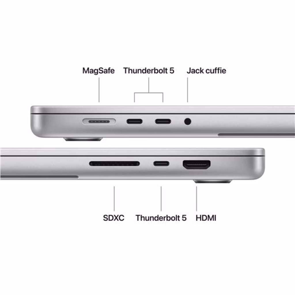 Apple MacBook Pro 16" M5 Pro chip 18-core CPU 20-core GPU, 24GB, 1TB SSD - ArgentoMacBook Pro 16". La velocità è di famiglia. MacBook Pro 16" con chip M5 Pro o M5 Max ti offre velocità di un altro livello e potenti funzioni AI on device per lavorare, creare e fare tutto ciò che ti piace. Ha una batteria che dura un giorno intero e uno spettacolare display Liquid Retina XDR: è Pro in tutti i sensi. Caratteristiche principali - ALLACCIA LE CINTURE Oltre a una CPU di nuova generazione, una memoria unificata più rapida e archiviazione SSD fino a due volte più scattante, i chip M5 Pro e M5 Max hanno una GPU più potente con un Neural Accelerator integrato in ogni core, che aumenta la velocità di prestazioni AI e addestramento on device. Così puoi sfrecciare anche nei lavori più complessi. - PROGETTATO PER L AI Il chip Apple e tutti i principali componenti che lo alimentano sono progettati per gestire carichi di lavoro AI on device impegnativi, come l inferenza e l addestramento di modelli linguistici di grandi dimensioni (LLM). E Apple Intelligence rende più facile scrivere, creare e fare tutto ciò che vuoi, con funzioni di ultima generazione per la tutela della privacy. - UN GIORNO INTERO DI BATTERIA MacBook Pro ti dà performance incredibili anche quando non è collegato alla corrente. - MACOS METTE IL TURBO ALLE APP Le tue app preferite, anche quelle incluse come FaceTime4 e Messaggi, vanno a tutta velocità su macOS. E grazie alla protezione integrata contro i virus e agli aggiornamenti software gratuiti, il tuo Mac resta sempre efficiente e sicuro. - TI PIACE L IPHONE? ANCHE IL MAC TI CONQUISTERÀ Il Mac funziona in perfetta sintonia con gli altri dispositivi Apple. Puoi fare copia e incolla dall iPhone al Mac, e anche usare il Mac per inviare messaggi di testo o fare e ricevere chiamate FaceTime. - BRILLANTE DISPLAY PRO Il display Liquid Retina XDR da 16,2" ha 1600 nit di luminosità di picco, fino a 1000 nit di luminosità costante e un contrasto di 1.000.000:1. - VIDEOCAMERA E AUDIO EVOLUTI La videocamera 12MP Center Stage ti tiene sempre al centro della scena, mentre i tre microfoni di livello professionale e i sei altoparlanti con audio spaziale e supporto per Dolby Atmos garantiscono un sonoro ottimale. - SI CONNETTE A TUTTO Ha tre porte Thunderbolt 5, una porta di ricarica MagSafe 3, uno slot SDXC card, una porta HDMI, un jack per cuffie e il chip wireless N1 progettato da Apple per le tecnologie Wi Fi 7e Bluetooth 6. E con il chip M5 Pro puoi collegare fino a tre monitor esterni, che diventano quattro con il chip M5 Max. - ALIMENTATORI N.B. MacBook Pro (16") con M5 Pro e M5 Max include un cavo di ricarica da USB C a MagSafe 3 senza alimentatore. Per ricaricare questo dispositivo è necessario un alimentatore USB C o un altra fonte di alimentazione USB PD da almeno 94W. Per una ricarica ottimale, Apple consiglia l alimentatore USB C Apple da 96W, oppure l alimentatore USB C Apple da 140W per gestire i flussi di lavoro più impegnativi e per sfruttare la ricarica rapida (fino al 50% di carica in 30 minuti). M5, M5 Pro o M5 Max? Sarà una scelta rapida.Questa è la nostra serie di chip più evoluta mai creata per un portatile professionale. Con le fenomenali prestazioni della CPU single-thread e multi-thread, e una memoria unificata più scattante, i chip della squadra M5 ti danno una velocità che sfiora l impossibile. L archiviazione SSD è fino a due volte più rapida di prima. E grazie ai potenti Neural Accelerator, sfrecci anche nelle attività che usano l intelligenza artificiale.Progettato per l AI. A partire dal chip.I chip Apple e tutti i principali sottosistemi che li alimentano sono progettati per l intelligenza artificiale. Si tratta di una vera e propria piattaforma che raggruppa hardware, software e tutto l ecosistema Apple. Così puoi far lavorare sodo l AI on-device, con un efficienza energetica incredibile. E ovviamente anche la sicurezza e la privacy sono parte integrante del sistema.Apple Intelligence, al tuo servizio.Con Apple Intelligence scrivere, creare e fare tutto ciò che vuoi diventa più facile. Trasforma una nota preparata al volo in un annuncio impeccabile. Elimina gli elementi di distrazione dalle foto con lo strumento Ripulisci. Crea immagini sfruttando i nuovi stili di ChatGPT su Image Playground. E usa le azioni intelligenti nell app Comandi Rapidi per costruirti le automazioni che preferisci: per esempio confrontare la trascrizione di un audio con gli appunti che hai preso ed estrarre informazioni da un PDF. Apple Intelligence è l intelligenza artificiale pensata apposta per te.Un giorno intero di autonomia. Molla la presa.MacBook Pro ha l autonomia migliore di sempre su un Mac: fino a 24 ore, per lavorare, creare e giocare tutto il giorno. Ogni modello mantiene lo stesso livello di prestazioni anche quando non è collegato alla corrente. Così puoi concentrarti su quello che stai facendo e dare sfogo alla tua creatività, senza perdere tempo a cercare una presa. E quando sei a corto d energia, grazie alla ricarica rapida ti bastano 30 minuti per far arrivare la batteria al 50%.Insieme sono ancora meglio.Mac e iPhone sono già straordinari da soli, ma insieme fanno faville. Grazie alle funzioni di Continuity, puoi passare da un dispositivo all altro in un attimo per condividere file e foto o continuare i lavori iniziati.Per tutti i gusti e le ambizioni.Ci sono decine di migliaia di app ottimizzate per i chip Apple: dagli strumenti che usi ogni giorno ai tuoi giochi preferiti, fino alle app professionali più potenti. Su MacBook Pro vanno tutte a gonfie vele.Ti illumini d immenso.Che tu sia su una terrazza soleggiata o in uno studio poco illuminato non fa differenza: lavori sempre al meglio. Lo splendido display Liquid Retina XDR offre 1600 nit di luminosità HDR di picco,2 e fino a 1000 nit per le immagini SDR in pieno sole, così hai una visione ottimale anche quando sei all aperto. E in ambienti più bui, la luminosità si riduce a 1
