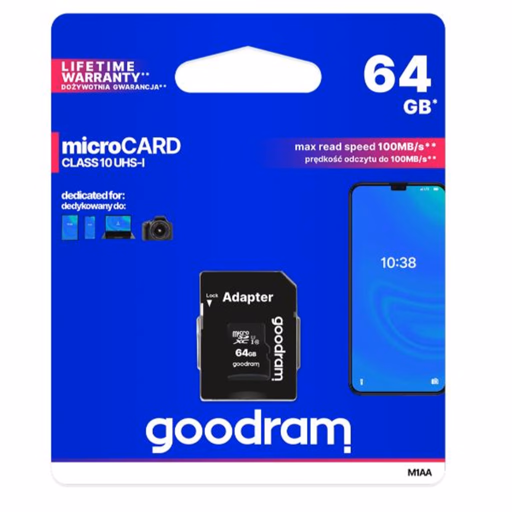Le schede di memoria GOODRAM M1AA UHS-I sono perfette per dispositivi con slot microSD come telefoni cellulari, tablet e fotocamere.