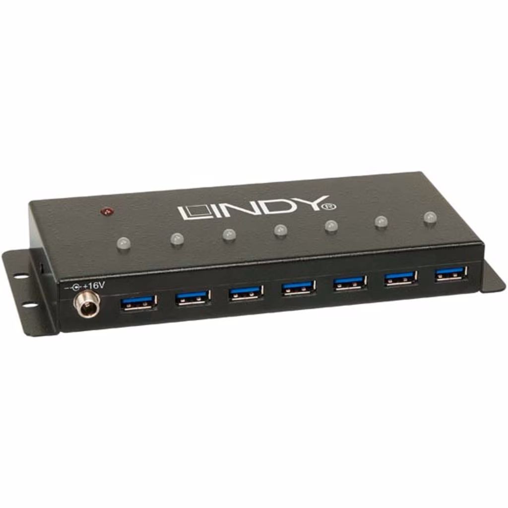 Fornisce 7 porte USB 3.0 SuperSpeed con velocità di trasferimento fino a 5Gbps Hub USB con scocca ad alta resistenza - Perfetto per applicazioni industriali Telaio in robusto metallo con elevata protezione dalle interferenze EMC e staffe integrate per installazione a pannello Alimentazione tramite Bus USB o alimentatore esterno 2 anni di garanzia L'Hub USB 3.0 Lindy a 7 Porte  è stato progettato per fornire un sistema di collegamento affidabile in ambienti particolarmente esigenti. Questo hub di grado industriale include un telaio totalmente realizzato in metallo che fornisce un'elevata protezione dalle interferenze EMC.  Inoltre questa robusta scocca include le staffe di montaggio per facilitarne l'installazione in ambienti industriali. Grazie alla retrocompatibilità con gli standard USB 2.0/1.1/ 1.0 permette anche di connettere simultaneamente periferiche meno recenti. Ogni porta è provvista di una protezione individuale dal corto circuito mentre l'alimentatore incluso fornisce una sorgente di alimentazione continua e sicura.