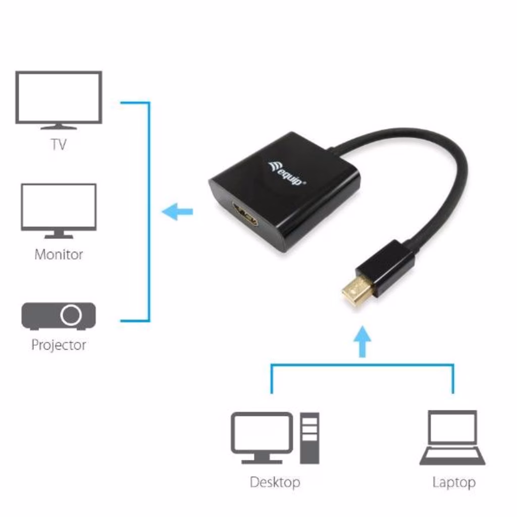 L'adattatore equip® Mini DisplayPort a HDMI è la scelta più economica per collegare le interfacce DisplayPort e HDMI. Composto da materiali di alta qualità, questo adattatore collega i dispositivi con interfaccia DisplayPort come PC e laptop a un display con interfaccia HDMI o viceversa. Non è necessario acquistare un altro schermo per la distribuzione.