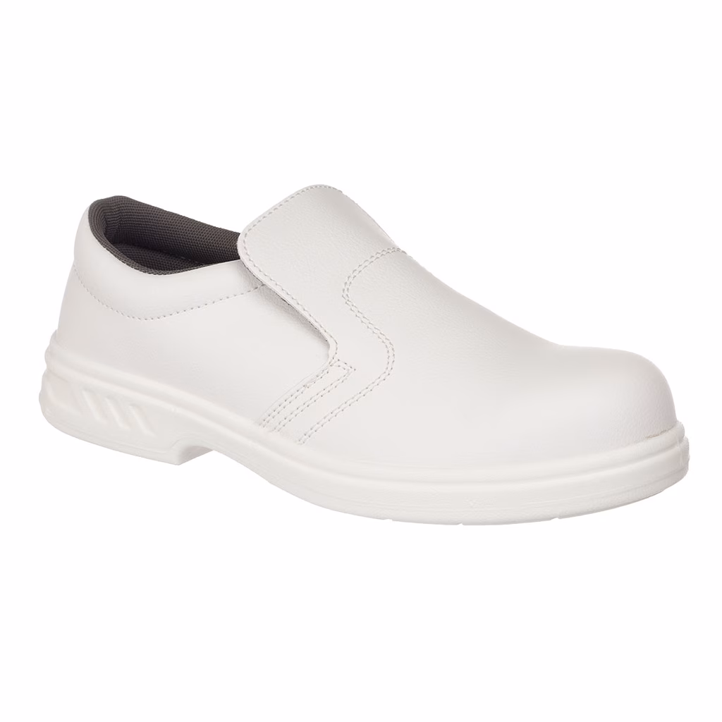Eccellente scarpa senza lacci - ideale per le industrie mediche e alimentari. Tomaia in microfibra facile da pulire - è pratica - sicura e resistente. Puntale in acciaio e ottima resistenza allo scivolamento. - Suola auto pulente per prevenire le contaminazioni - Colletto imbottito per un maggior comfort - Tomaia dal design lineare - Sagoma slip-on - Disponibile in taglie unisex - Lavabile in lavatrice a 30 °C - Adatto ai vegani - Disegnate per le stanze asettiche - mediche e alimentari - Certificato CE - Marcato UKCA - Puntale in acciaio protettivo