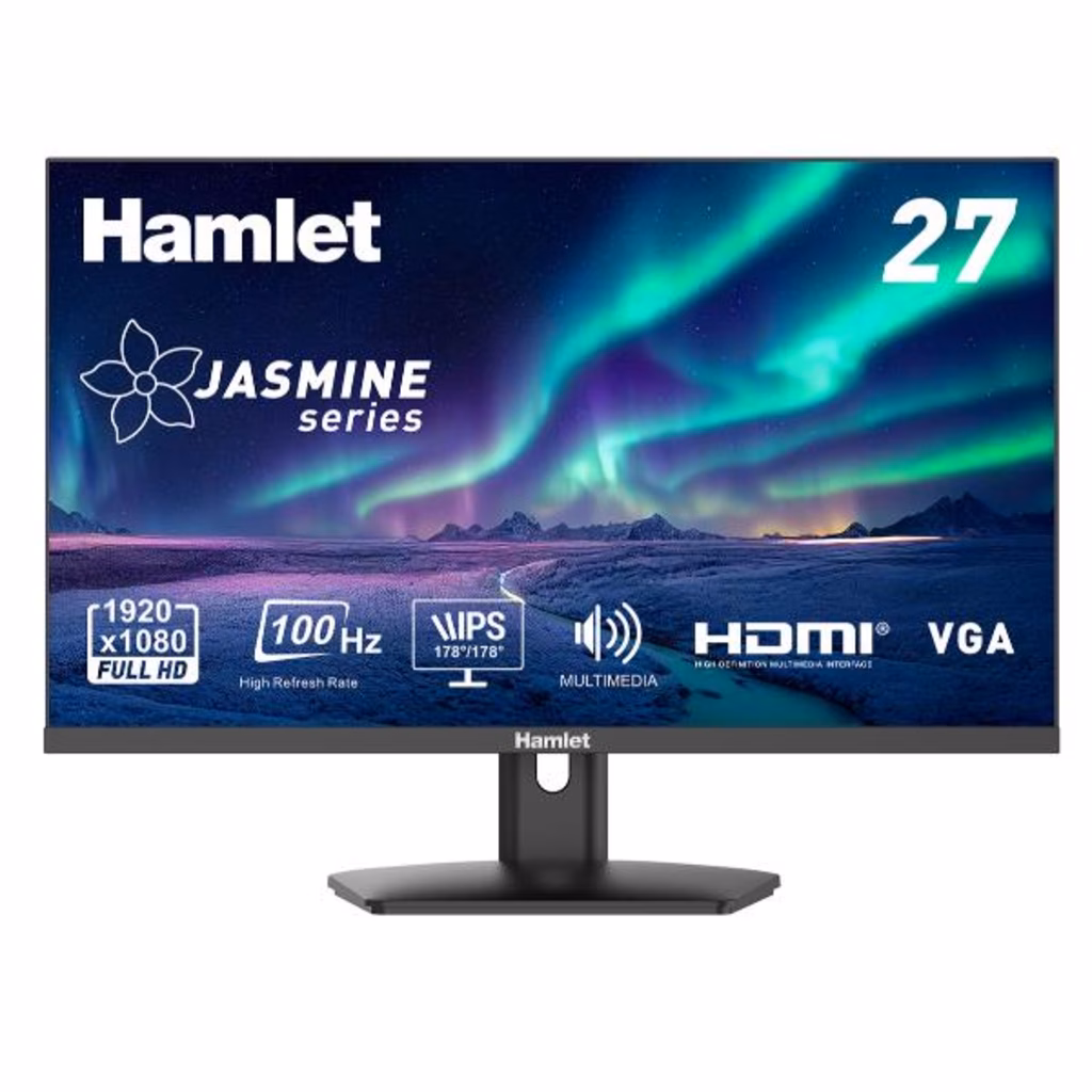 I nuovi monitor Hamlet della linea Jasmine sono pensati per l'utilizzo professionale per migliorare la produttività e il benessere della postazione di lavoro. I monitor serie Jasmine sono tutti dotati di schermo 100Hz con tecnologia IPS (In-Plane Switching) con risoluzione Full HD 1920x1080 per offrire immagini nitide e brillanti sotto ogni angolazione grazie all'ampio angolo di visione.
