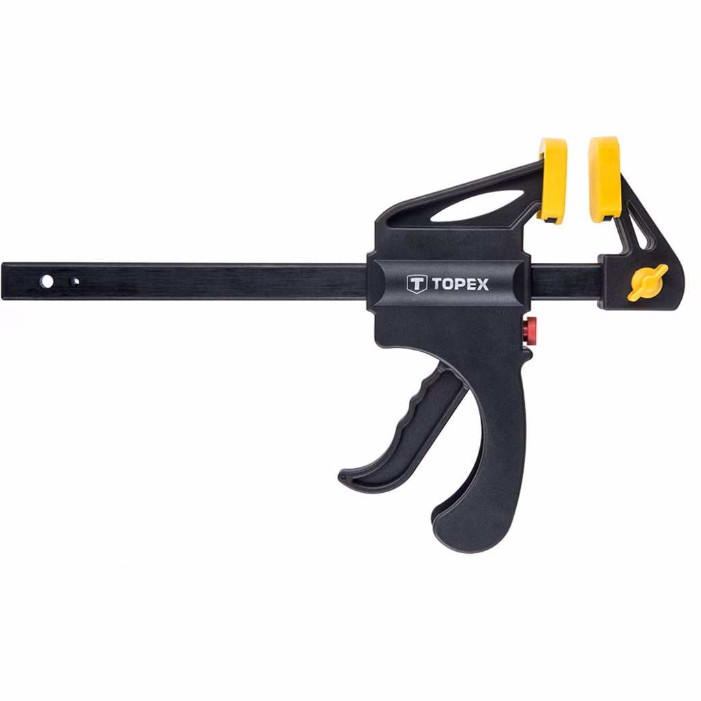 Il morsetto rapido TOPEX è uno strumento universale che può essere utilizzato come morsetto, divaricatore e in altre applicazioni. Utile per lavori professionali e piccoli lavori di ristrutturazione e costruzione - impugnatura della pistola in plastica di alta qualità, profilata per un migliore comfort di utilizzo. Inoltre, lo strumento è dotato di un sistema per il cambio rapido che semplifica l'utilizzo dello strumento. Affidabilità del prodotto garantita da certificati TÜV, GS