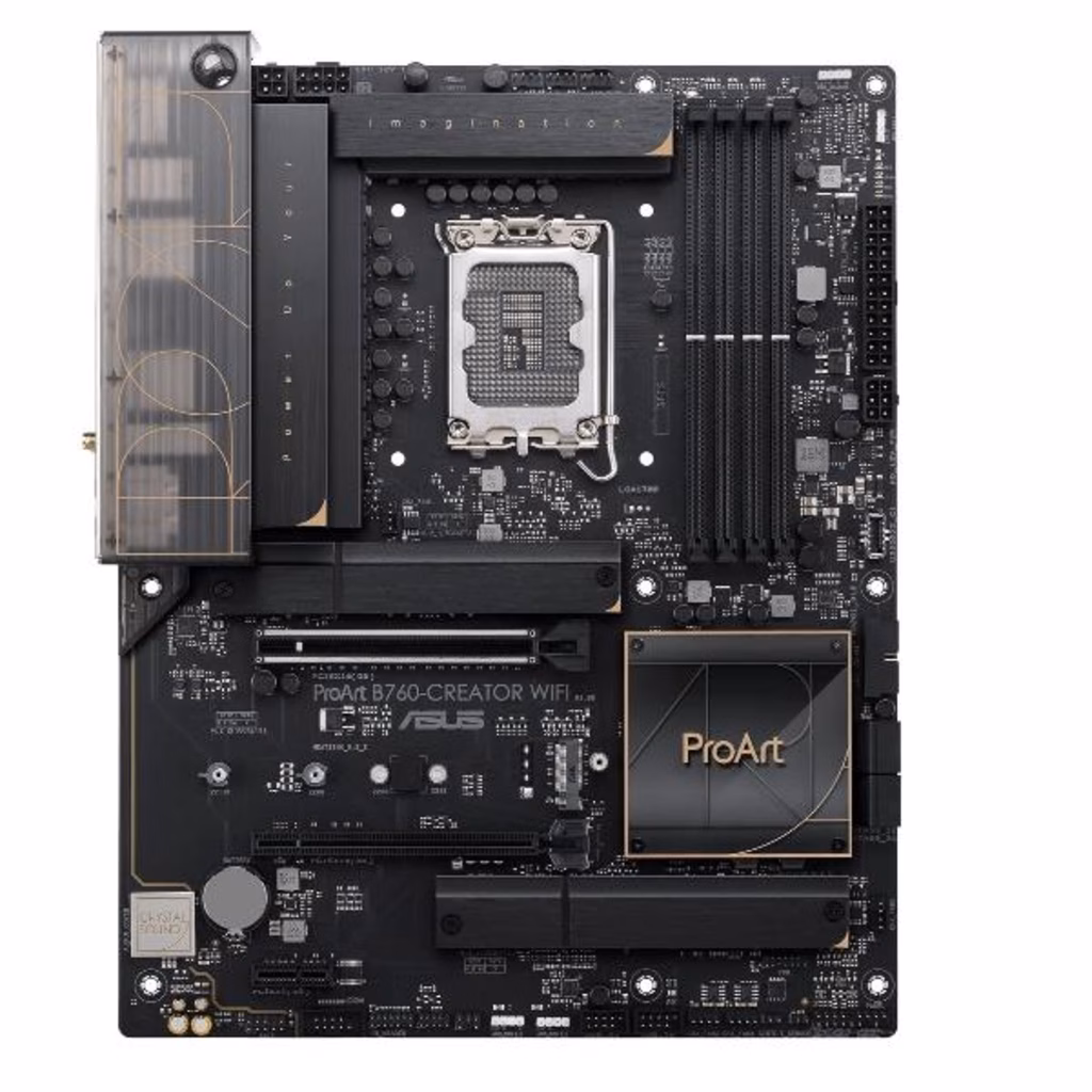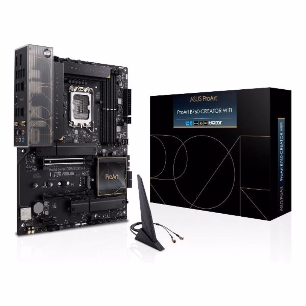 ProArt B760-Creator WiFi è una scheda madre potenziata progettata per carichi di lavoro di creazioni di contenuti come la produzione virtuale, il rendering 3D e l'editing video 4K/8K. Scatena le prestazioni dei processori Intel Core di 13a e 12a generazione attraverso un robusto design di alimentazione e raffreddamento, e la sua connettività completa include tre slot M.2, WiFi 6, 2,5 Gb e 1 Gb Ethernet, un USB 3.2 Gen 2x2 Type-C front- connettore a pannello con Quick Charge 4+ da 60W e Thunderbolt con 4 connettori.