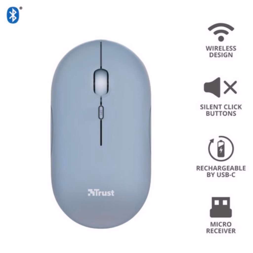 Il mouse Trust Puck è la soluzione migliore per superare le sfide della mobilità. Questo mouse wireless ultrasottile è abbastanza piccolo da poterti seguire ovunque, ma al tempo stesso è comodo da usare. È ricco di pratiche funzionalità, come la doppia connettività wireless, i tasti silenziosi e la batteria ricaricabile. Inoltre, è adatto per utenti destri e mancini!