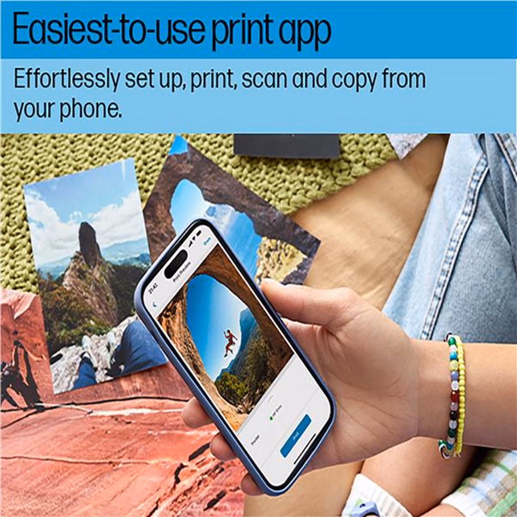 Esplora le funzionalità della stampante in tutta semplicità grazie al display touchscreen a colori intuitivo. Il Wi-Fi dual-band con ripristino automatico di HP ti consente di restare sempre online. Stampante multifunzione wireless, ideale per stampare foto e documenti a colori di alta qualità a casa. Stampa di foto dai colori brillanti, più funzionalità di stampa fronte/retro, copia e scansione. Design essenziale e compatto con un display touchscreen per un'esperienza semplificata al massimo.