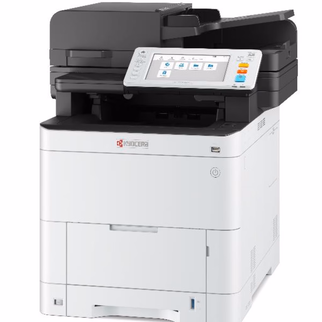Multifunzione laser colore - Funzioni standard stampa, copia, scansione fronte-retro - Pannello operativo: display da 177,8 mm con pannello a sfioramento a colori, altoparlanti per notifiche lavori - Velocità di stampa: fino a 40 pagine A4 al minuto a colori e in b/n - risoluzione: 1200 x 1200 dpi (stampa) 600 x 600 dpi (scansione/copia) - Capacità carta in ingresso: bypass multiuso da 100 fogli; cassetto carta universale standard da 250 fogli - Funzionalità fronte/retro: si - USB 2.0 (Hi-Speed), 2 interfacce USB Host, Gigabit Ethernet (10BASE-T/100BASE-TX/1000BASE-T) - Stampa da mobile supportata: app KYOCERA Mobile Print per iOS e Android, AirPrint, Mopria, Microsoft Universal Print, Wi-Fi Direct (opzionale)- Dimensioni (L x P x A) senza imballaggio: 480 × 577,5 × 571,5 mm (senza sporgenze); 480 × 577,5 × 575 mm (con sporgenze)