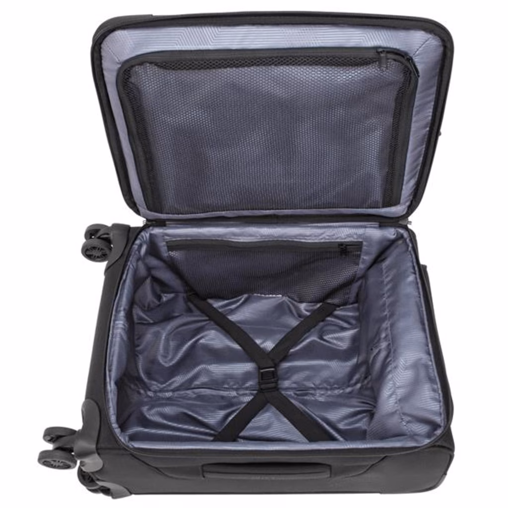 Conforme agli standard internazionali per il bagaglio a mano: 55 × 35,5 × 23 cm e 737 centimetri cubici