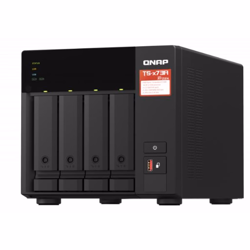 Dispone di un processore della serie AMD Ryzen V1000 V1500B quad-core che offre maggiori prestazioni di sistema con quad-core/8 thread e Turbo Core fino a 2,2 GHz. Il TS-473A dispone di due porte 2,5GbE RJ45 e due slot PCIe Gen 3 per l implementazione flessibile delle reti 5GbE/10GbE. Due slot SSD M.2 NVMe per la tecnologia Qtier e la cache SSD per l ottimizzazione continua dell'archiviazione. Il TS-473A supporta QTS e QuTS hero, che consentono agli utenti di cambiare in modo flessibile il sistema operativo in base ai propri requisiti.