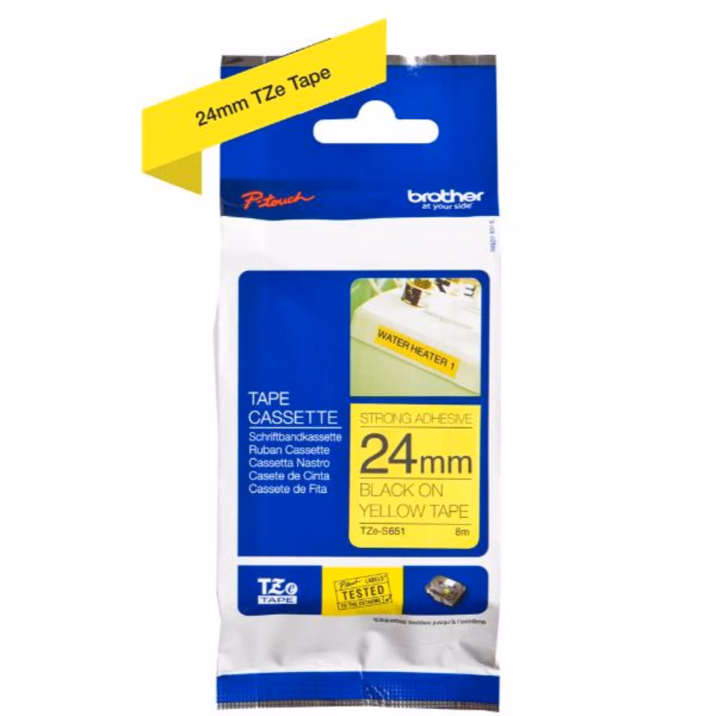 Nastro per etichettatura nero su giallo Brother TZe-S651 24 mm di larghezza