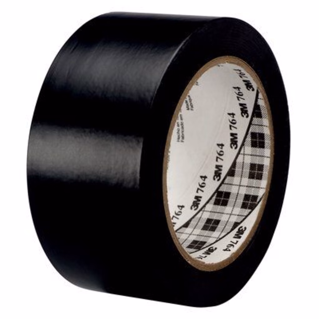 Nastro in vinile multiuso 3M764, utilizzato in applicazioni non critiche come la codifica a colori, per rinforzare e per apporre marchi di sicurezza o temporanei su macchine, per proteggere dall'abrasione ricambi, apparecchiature e manufatti in genere - applicazioni suggerite: Marcatura di applicazioni in aree a traffico leggero, pareti e tubi; Tenuta e raggruppamento per scopi generici; Marcatura di parti o macchine; Protezione temporanea di parti, attrezzature o prodotti dall'abrasione; Marcatura di punti o ingranaggi dell'attrezzatura a scopo di avvertimento. Può essere applicato a mano su pavimento